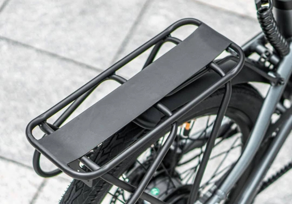Baga được thêm nhằm phù hợp hơn với nhu cầu sử dụng thực tế tại châu Á, nơi người dùng thường chở thêm đồ cá nhân, balo, túi hàng hoặc ghế trẻ em. Thiết kế baga bằng hợp kim nhôm chắc chắn, chịu tải tốt mà vẫn giữ được tổng thể gọn nhẹ.