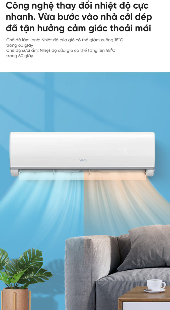 - Thay đổi nhiệt độ cực nhanh: Chỉ trong 60 giây, máy có thể giảm nhiệt độ gió lạnh xuống 18°C hoặc tăng lên 48°C ở chế độ sưởi, mang lại cảm giác thoải mái ngay lập tức.
