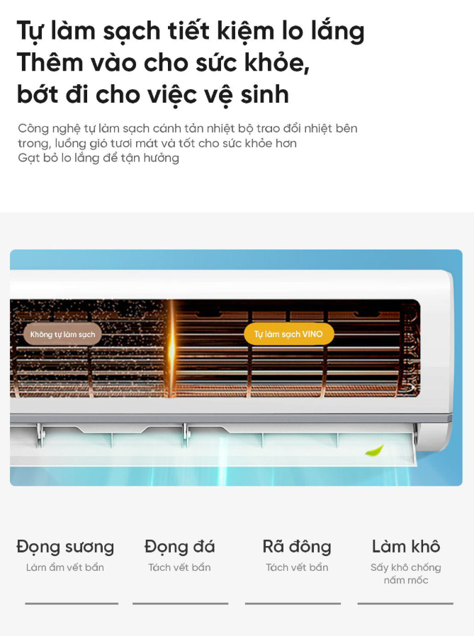 - Làm lạnh/sưởi nhanh, êm ái, tự làm sạch.
