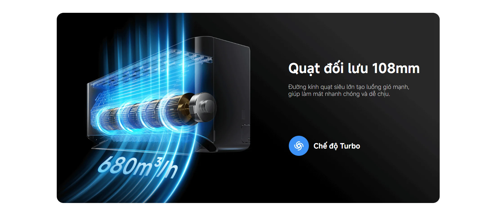 - Cánh đảo gió rộng 106mm giúp luồng không khí phân tán đều hơn