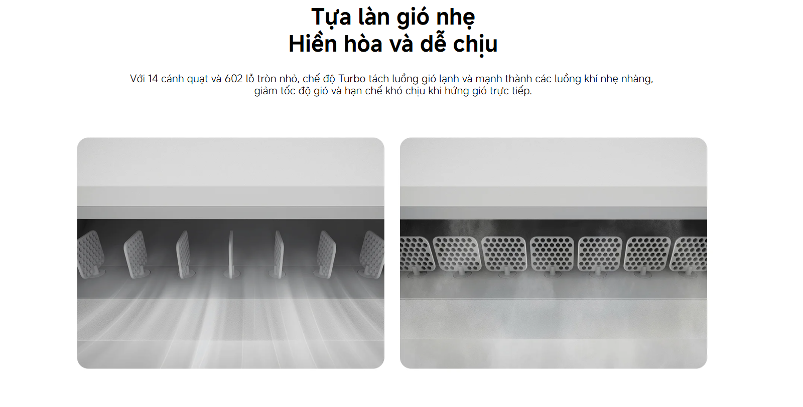 - Tạo khí mềm tốt cho sức khỏe ( với 602 lỗ siêu nhỏ tròn ở mặt lạnh để làm mềm luồng không khí )