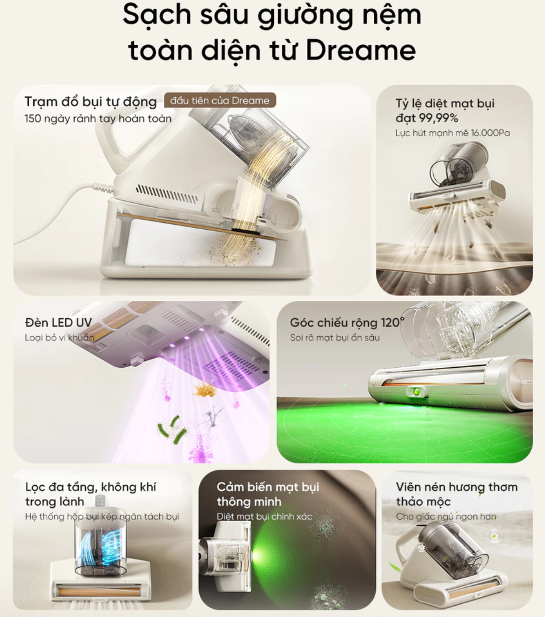 Đây là máy hút bụi giường nệm cao cấp với nhiều công nghệ tiên tiến nhất của Dreame năm 2026. Nên mua hàng chính hãng để được bảo hành 24 tháng, hỗ trợ thay phụ kiện dễ dàng.