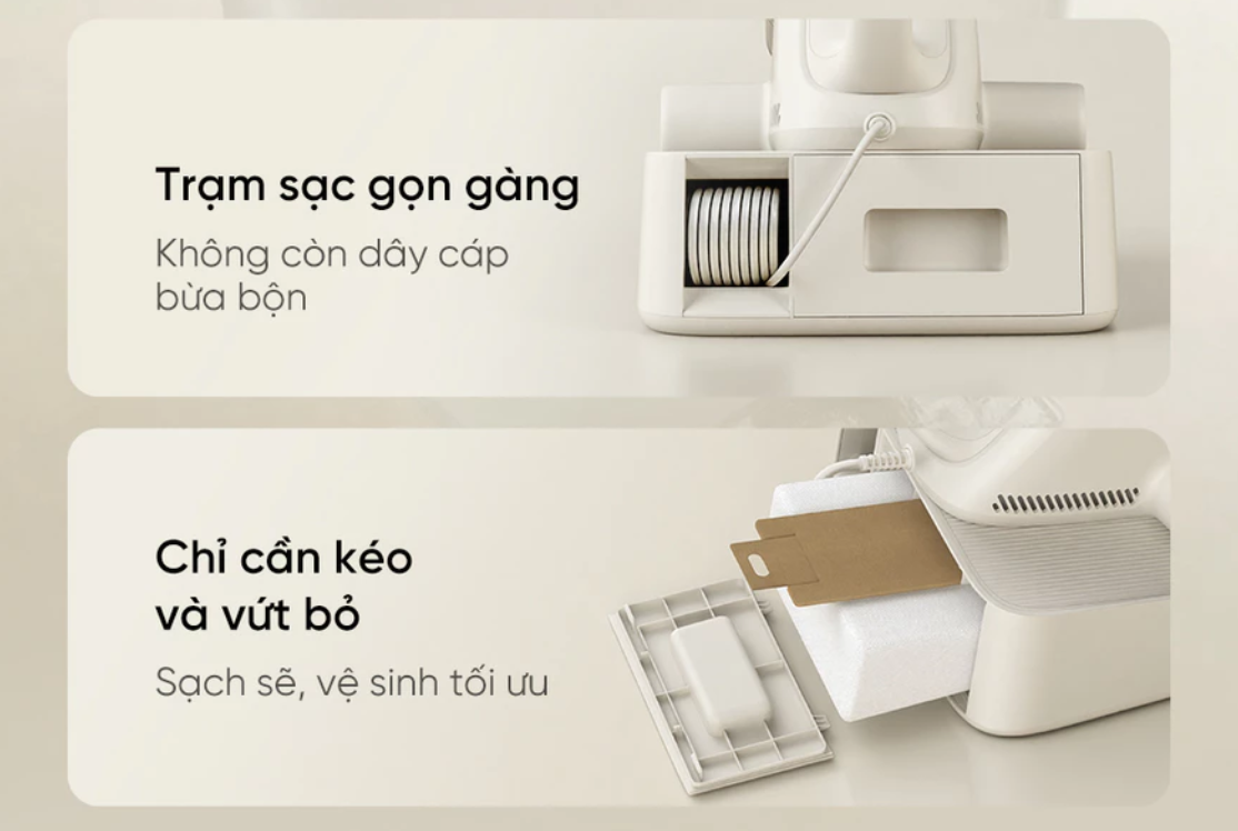 - Trạm đổ rác tự động: 150 ngày hoàn toàn rảnh tay (túi chứa bụi 1.3L, đổ chỉ 15 giây)