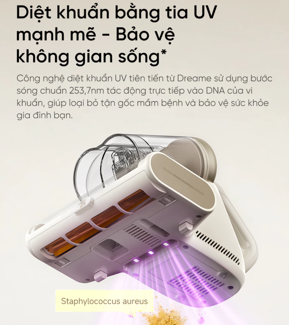 Máy hút bụi giường nệm Dreame D20 Aura diệt khuẩn LED UV