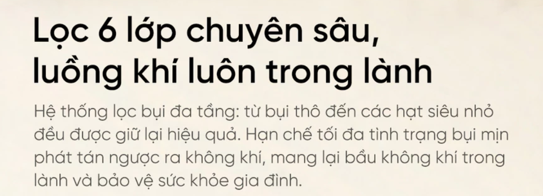 - Hệ thống lọc 6 lớp xoáy hộp đôi Lọc xoáy ly tâm chống rối, hộp chứa bụi kép tách bụi thô và bụi mịn hiệu quả. Không khí thải ra sạch, an toàn cho gia đình có trẻ nhỏ hoặc người dị ứng.