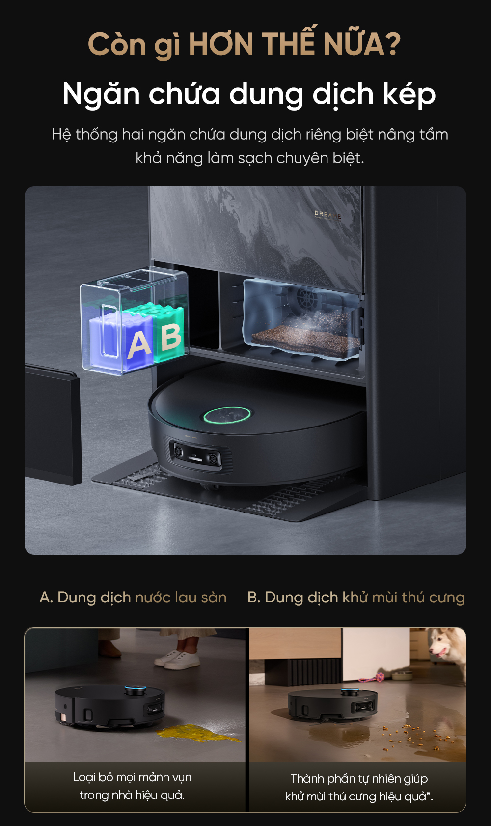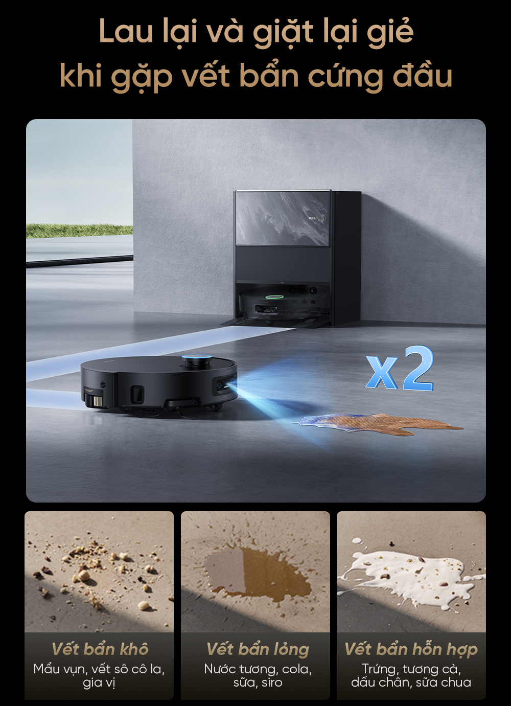 Dock sạc của robot tích hợp hệ thống 100°C ThermoHub™ Self-Cleaning, sử dụng nước nóng 100 độ C để rửa sạch tấm lau và hệ thống bên trong. Cơ chế này giúp loại bỏ vi khuẩn, nấm mốc và mùi hôi hiệu quả, đảm bảo vệ sinh an toàn tuyệt đối. Gọi mua hàng: 0888079997