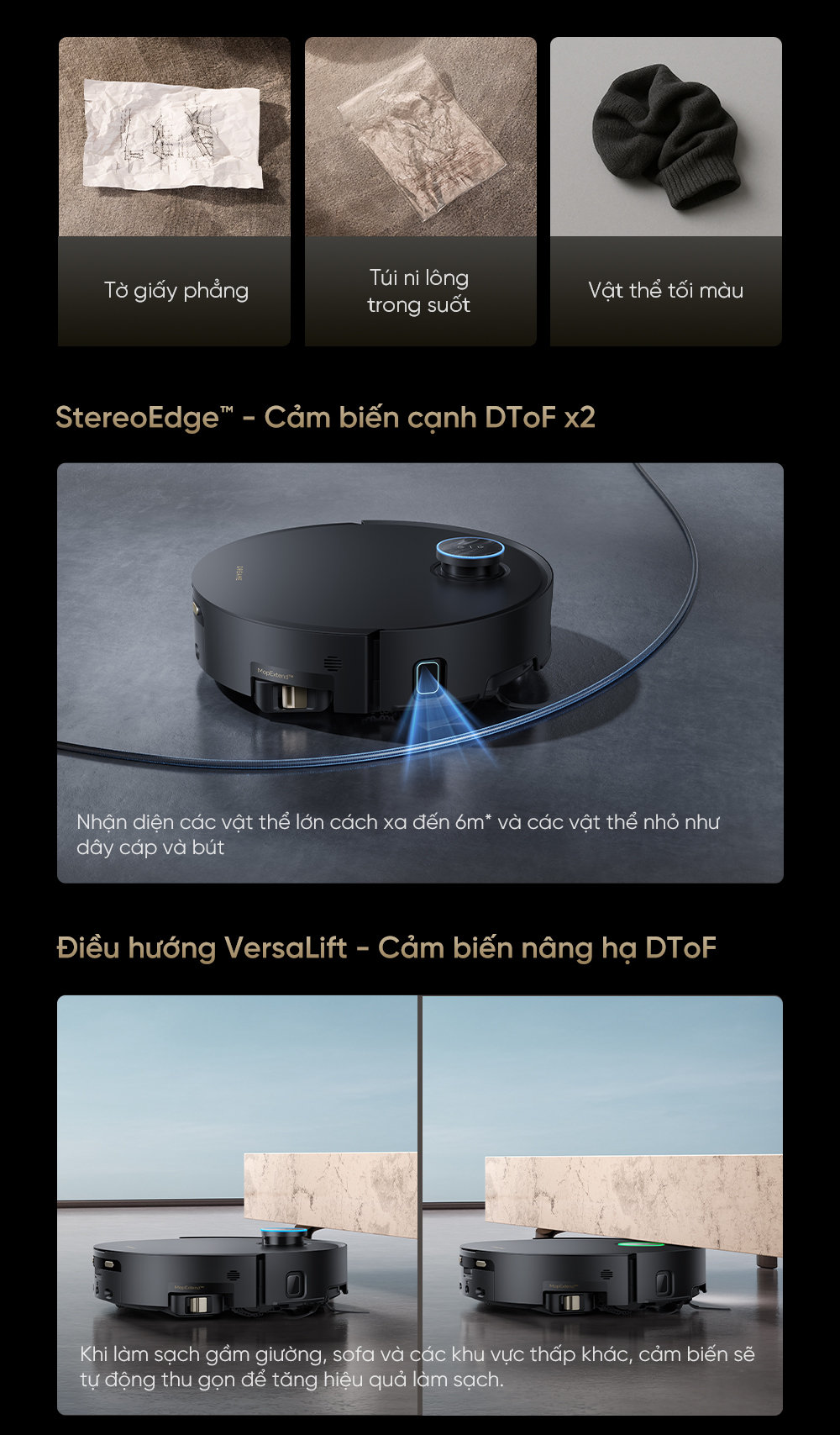 Dreame Aqua 10 Pro Track được trang bị công nghệ VersaLift™ Low Space Cleaning giúp robot điều chỉnh chiều cao thân máy một cách linh hoạt để chui lọt vào những không gian cực thấp, làm sạch kỹ lưỡng hơn các dòng robot truyền thống.