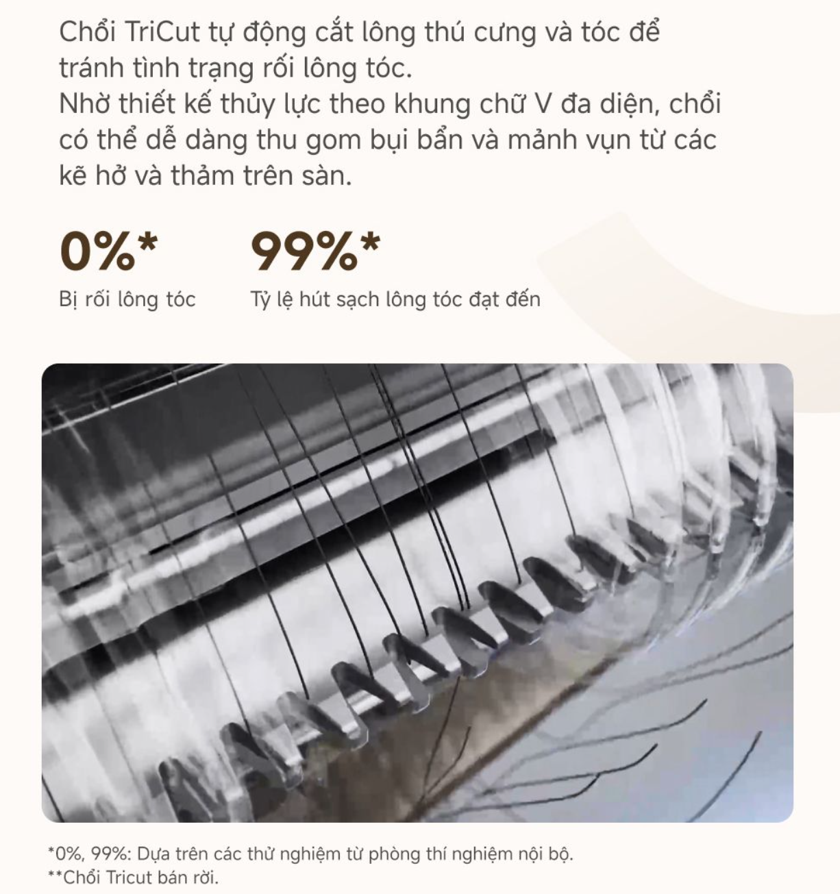 - Có thể trang bị được chổi chính TriCut chống rối tóc hiệu quả