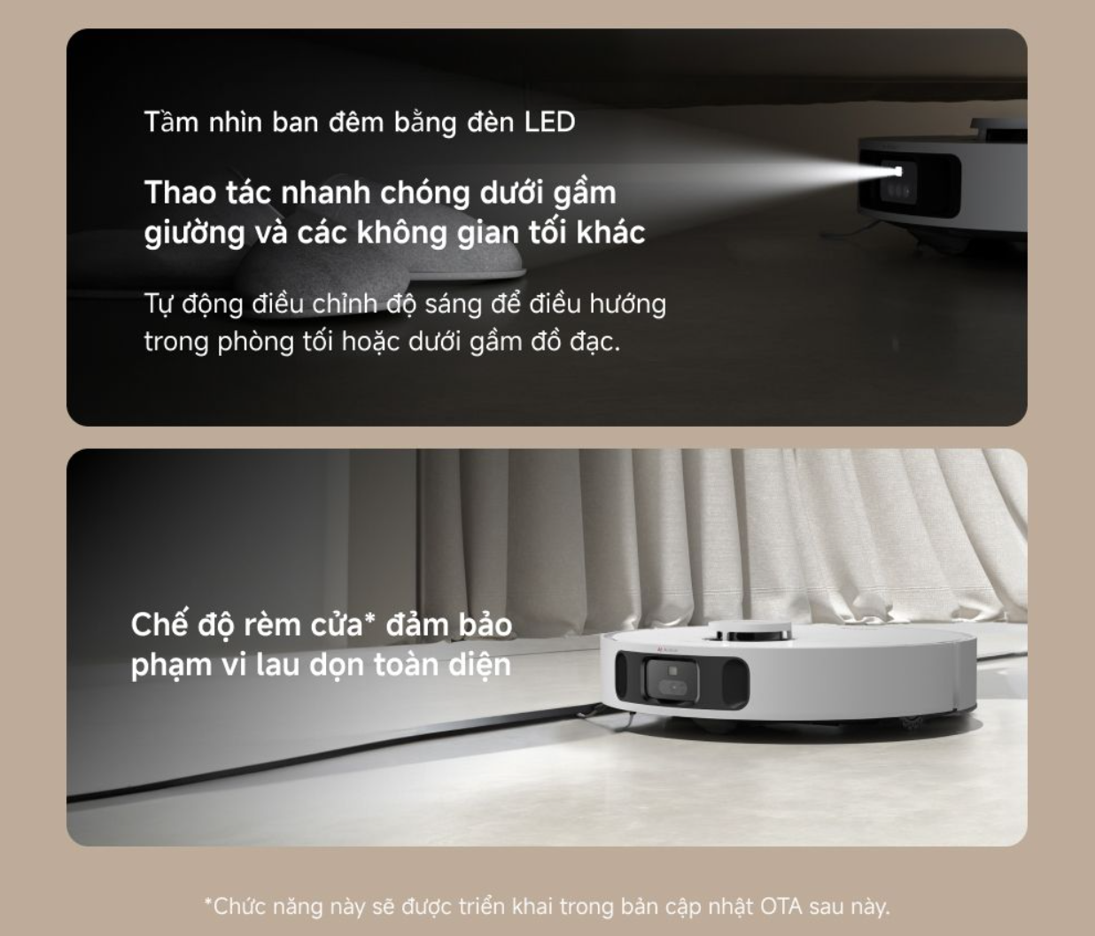 Với công nghệ LED tầm nhìn ban đêm, Dreame L30s Ultra dễ dàng di chuyển dưới gầm giường và trong các môi trường tối khác. Robot này tự động điều chỉnh mức độ sáng để điều hướng qua các phòng tối hoặc dưới đồ nội thất, đảm bảo làm sạch hiệu quả bất kể điều kiện ánh sáng.