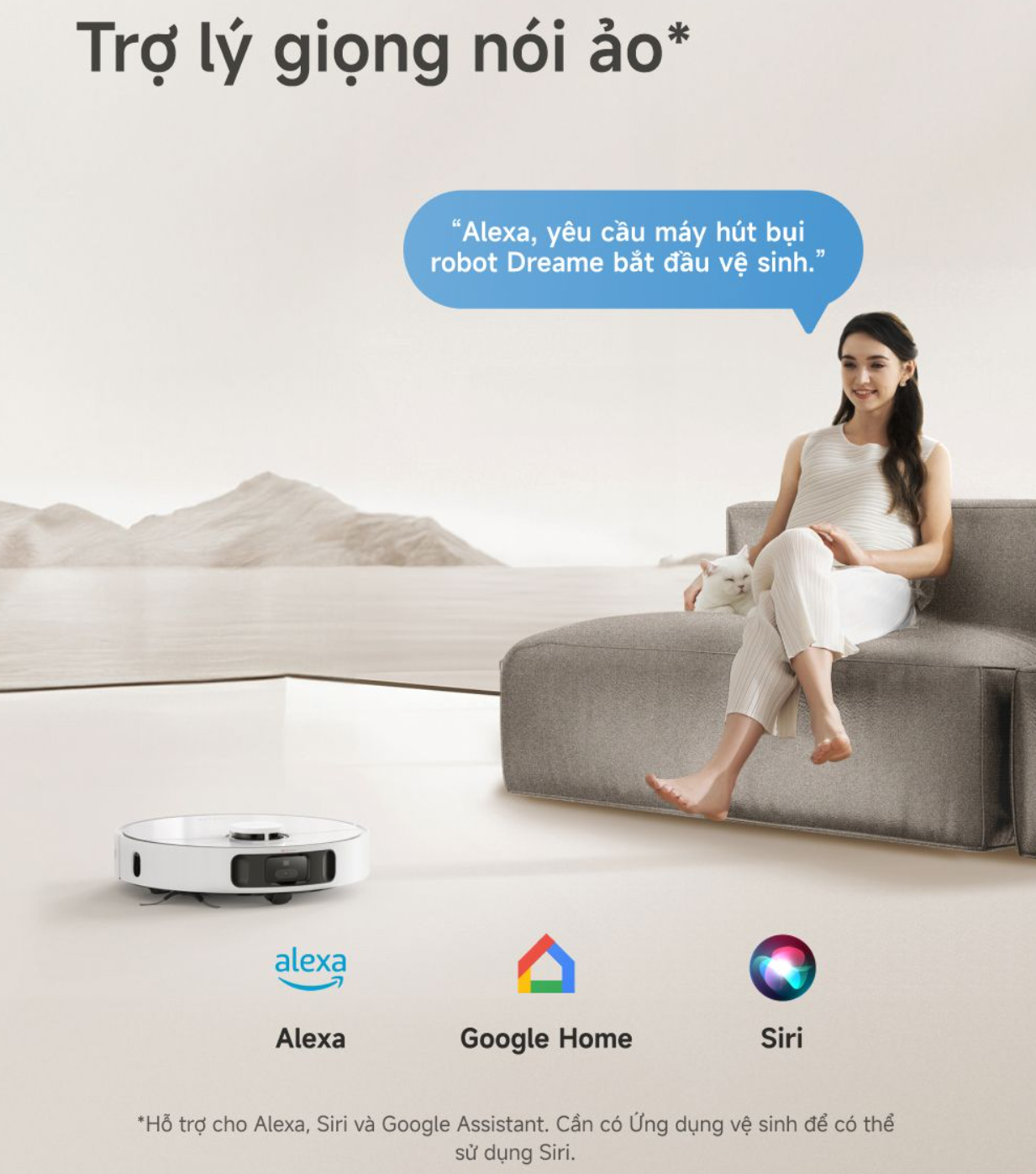 Robot hút bụi Dreame L30s Ultra có thể kết nối với ứng dụng Dreamehome trên điện thoại để quản lý và điều khiển robot. Ngoài ra, Dreame L30s Ultra còn hỗ trợ các trợ lý ảo bên thứ ba như Alexa, Siri và Google Assistant. Nhờ tích hợp này, bạn có thể dễ dàng điều khiển robot hút bụi bằng các lệnh giọng nói đơn giản, giúp việc làm sạch trở nên nhanh chóng và thuận tiện hơn.