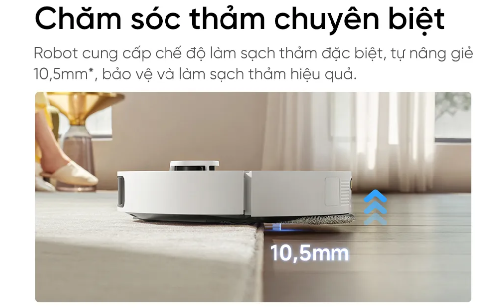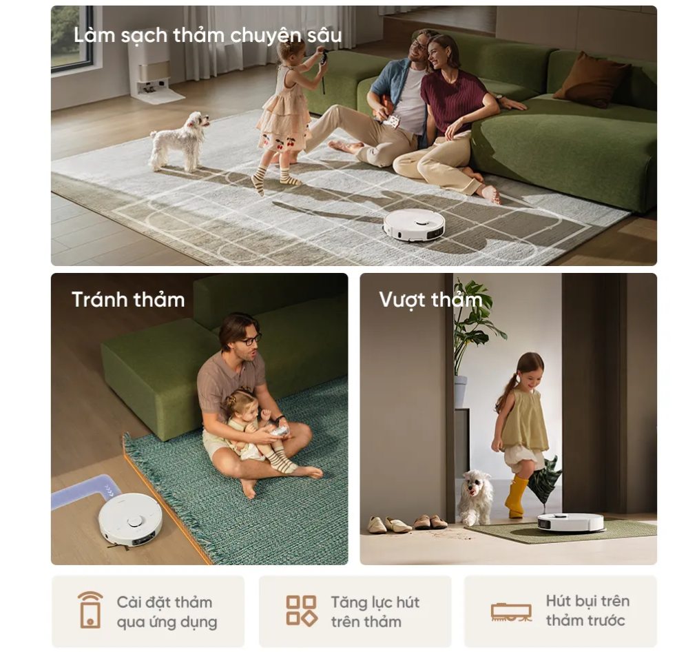 - Vượt thảm linh hoạt để tiếp tục hành trình dọn dẹp.