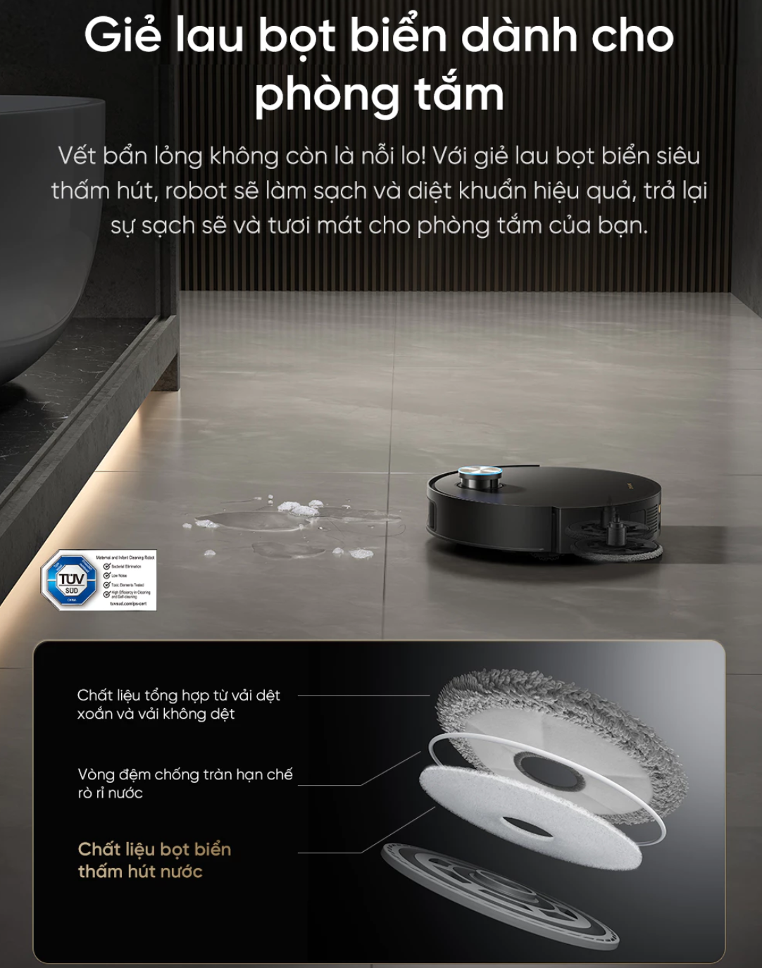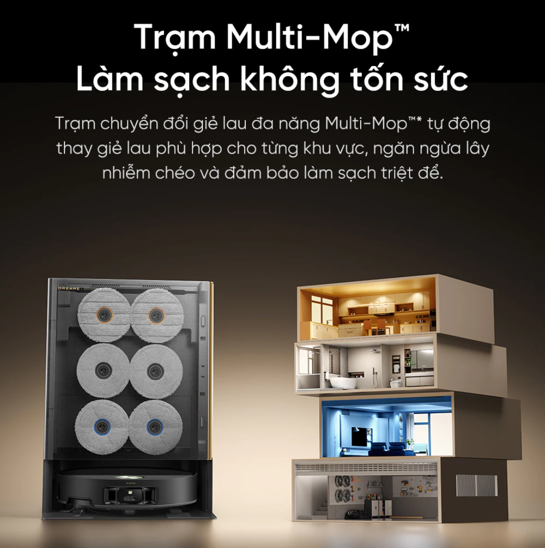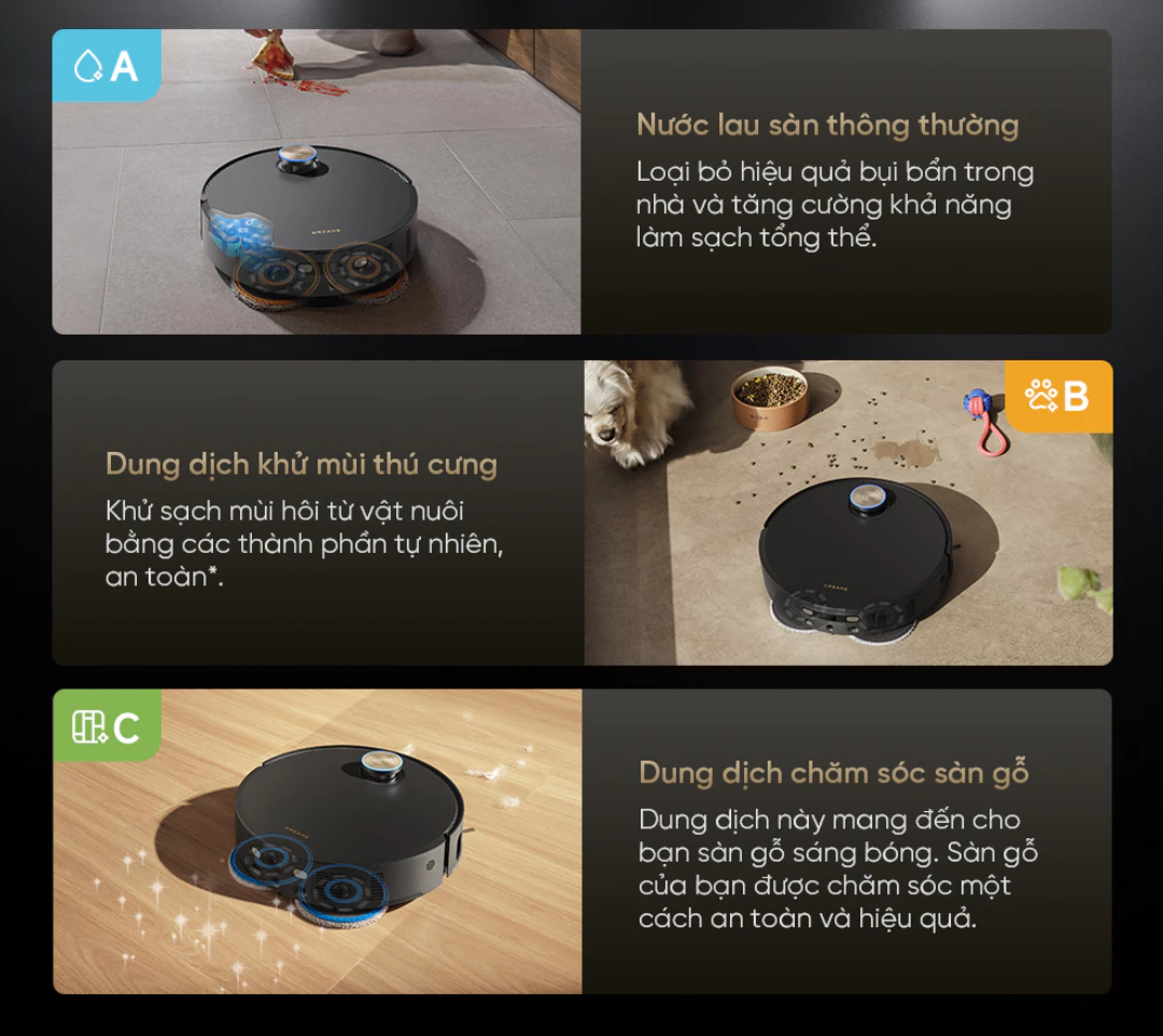 - Tự động thay đổi giẻ lau phù hợp cho từng khu vực.