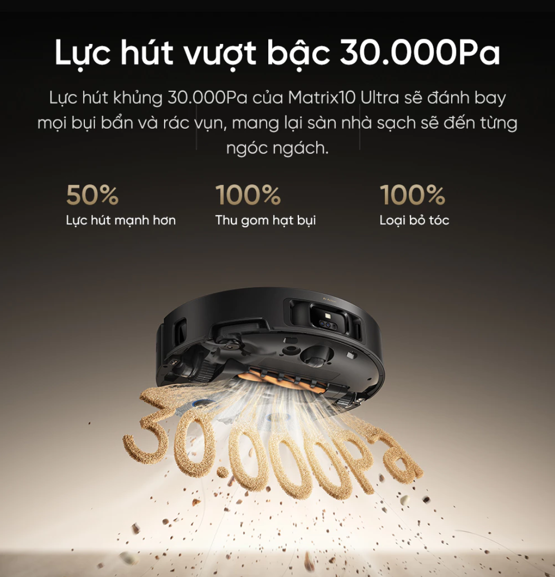 Robot hút bụi lau nhà Dreame Matrix10 Ultra là dòng sản phẩm cao cấp mới nhất của Dreame, được trang bị nhiều công nghệ hiện đại, mang đến trải nghiệm dọn dẹp hoàn toàn tự động và chuyên sâu. Với lực hút mạnh mẽ 30.000Pa, hệ thống chổi kép HyperStream™ cùng khả năng tự giặt – sấy giẻ lau bằng nước nóng 100°C, Matrix10 Ultra là lựa chọn lý tưởng cho gia đình hiện đại.
