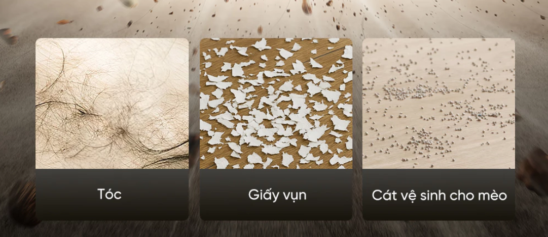 Dọn sạch mọi loại bụi bẩn, mảnh vụn và tóc rối.