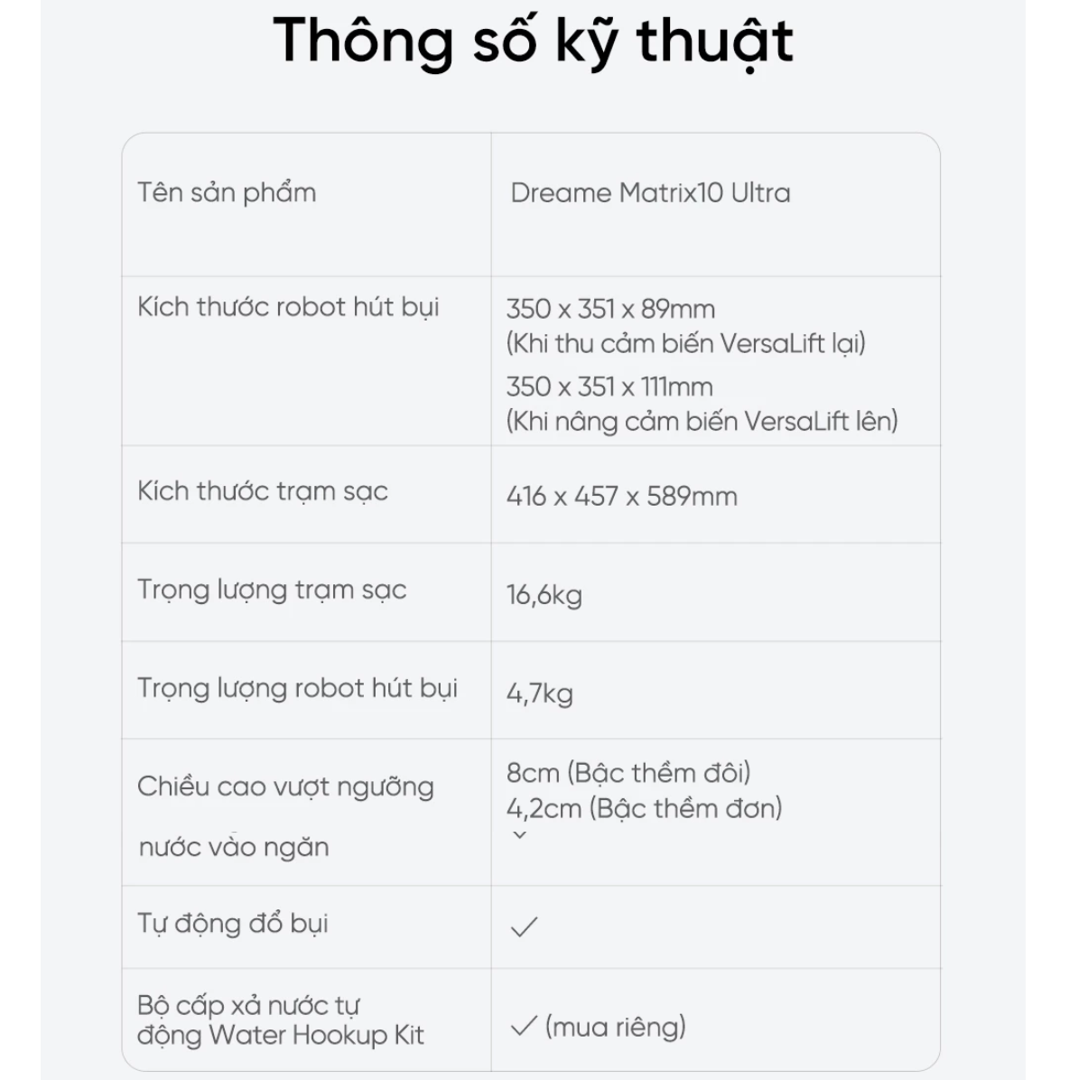Thông số kỹ thuật Dreame Matrix10 Ultra