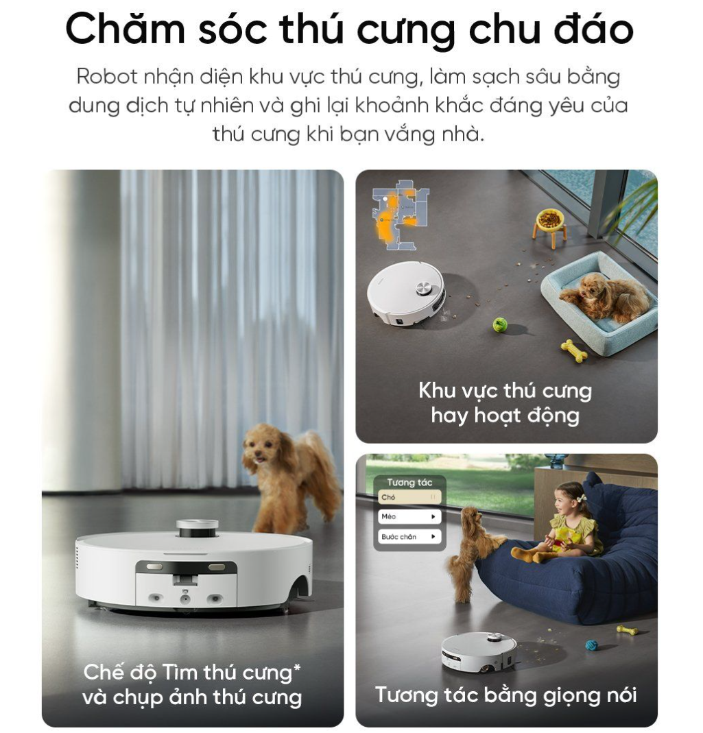 Thú vị hơn, robot còn có khả năng ghi lại hình ảnh hoặc video ngắn của thú cưng khi bạn vắng nhà – vừa sạch vừa vui.