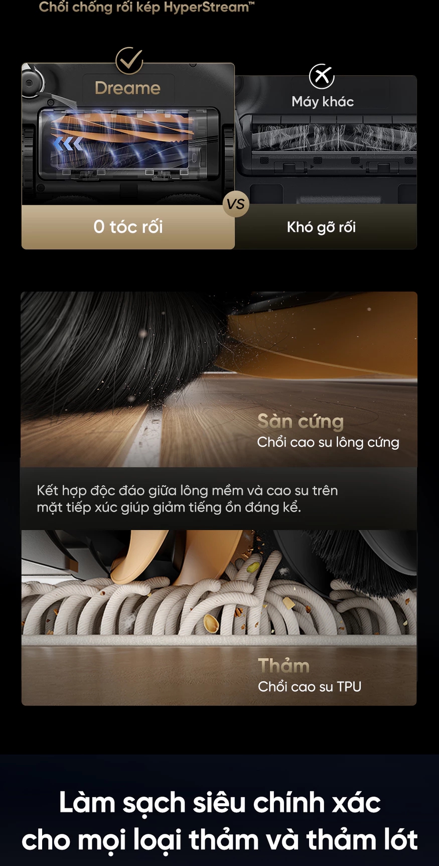 - Chổi chính: Chổi chống rối kép HyperStream™