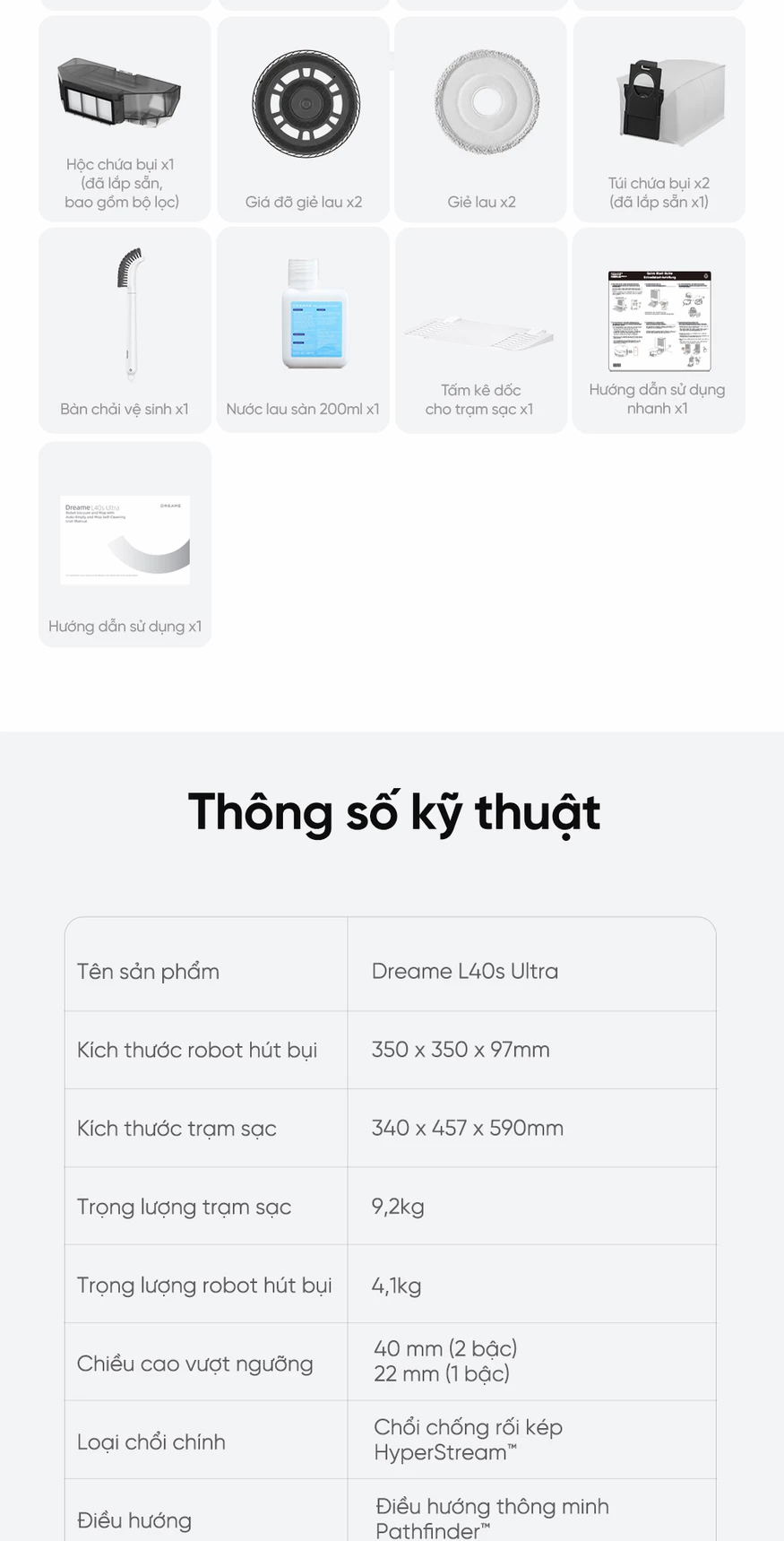 - Tên sản phẩm: Robot hút bụi lau sàn chuyên dụng Dreame L40s Ultra