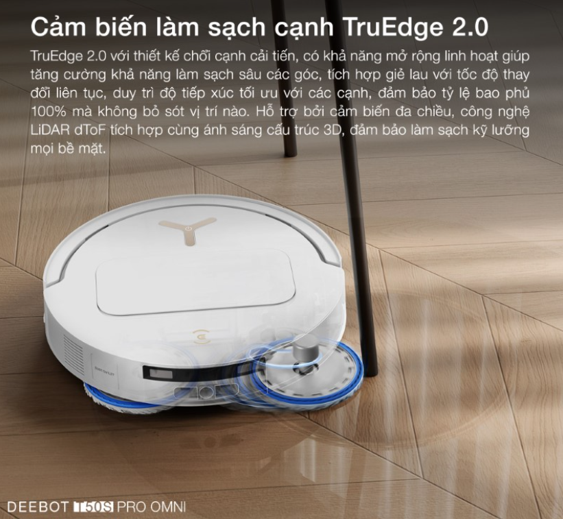 Deebot T50S Pro Omni làm sạch sát mép 1mm với công nghệ TruEdge 2.0