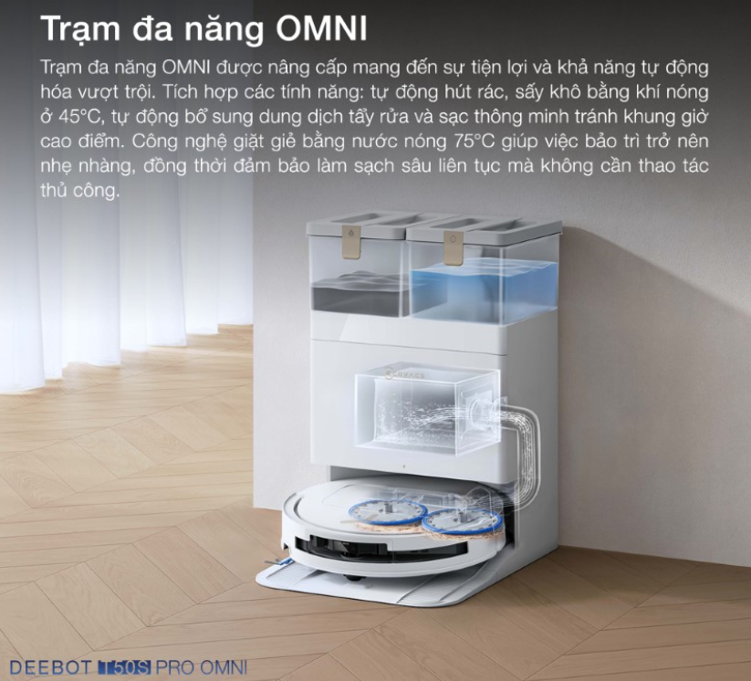 Robot hút bụi Ecovacs T50S Pro Omni sạc điện thông minh giờ thấp điểm