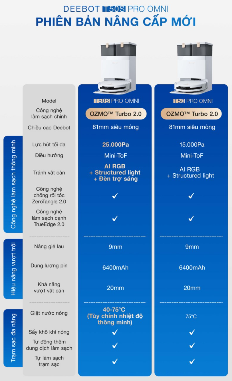 | Tên sản phẩm | Robot hút bụi lau nhà Ecovacs Deebot T50S Pro Omni |