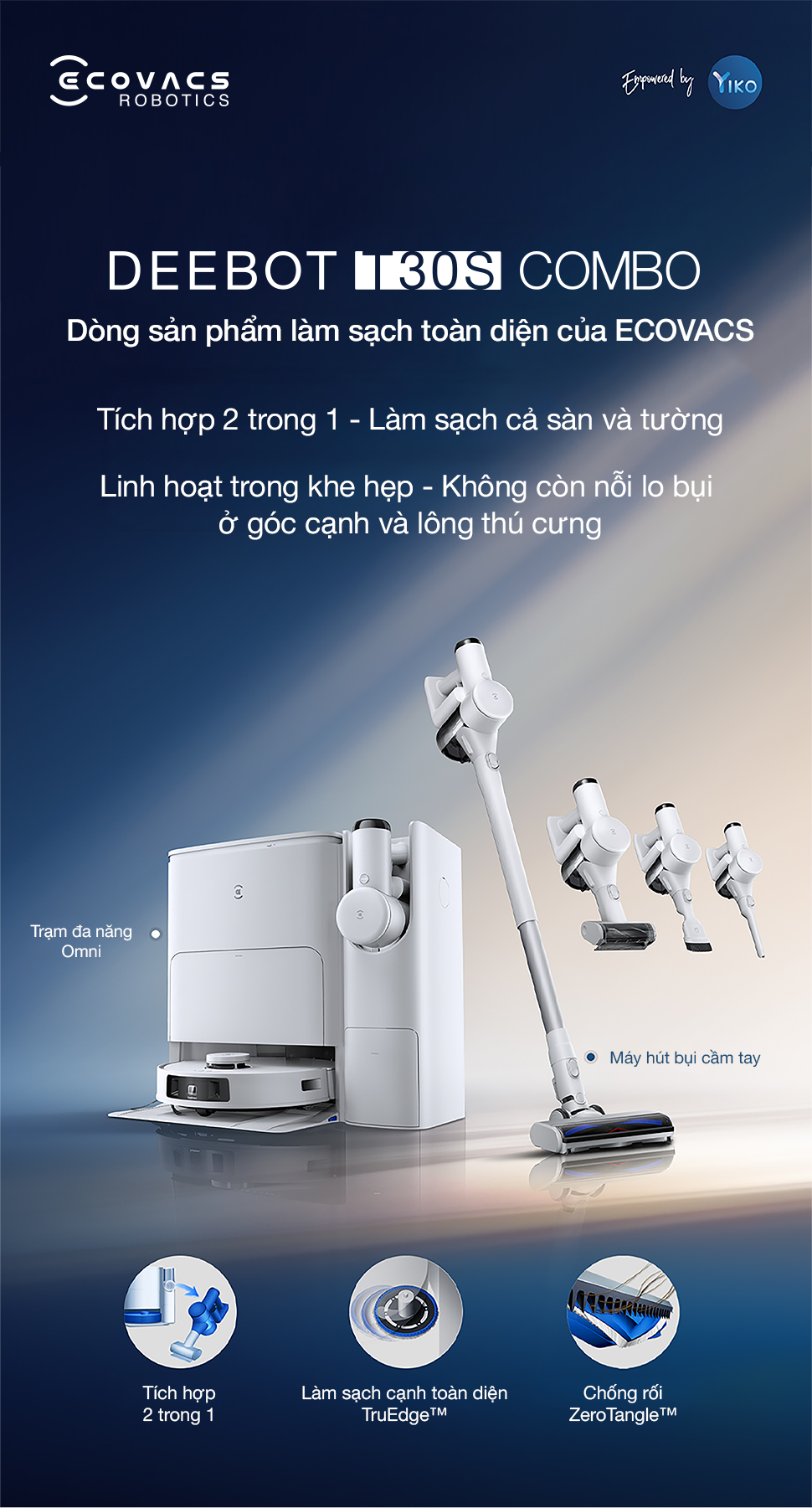 Robot hút bụi lau nhà và máy hút bụi cầm tay Ecovacs Deebot T30S Combo 2026