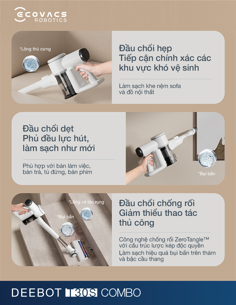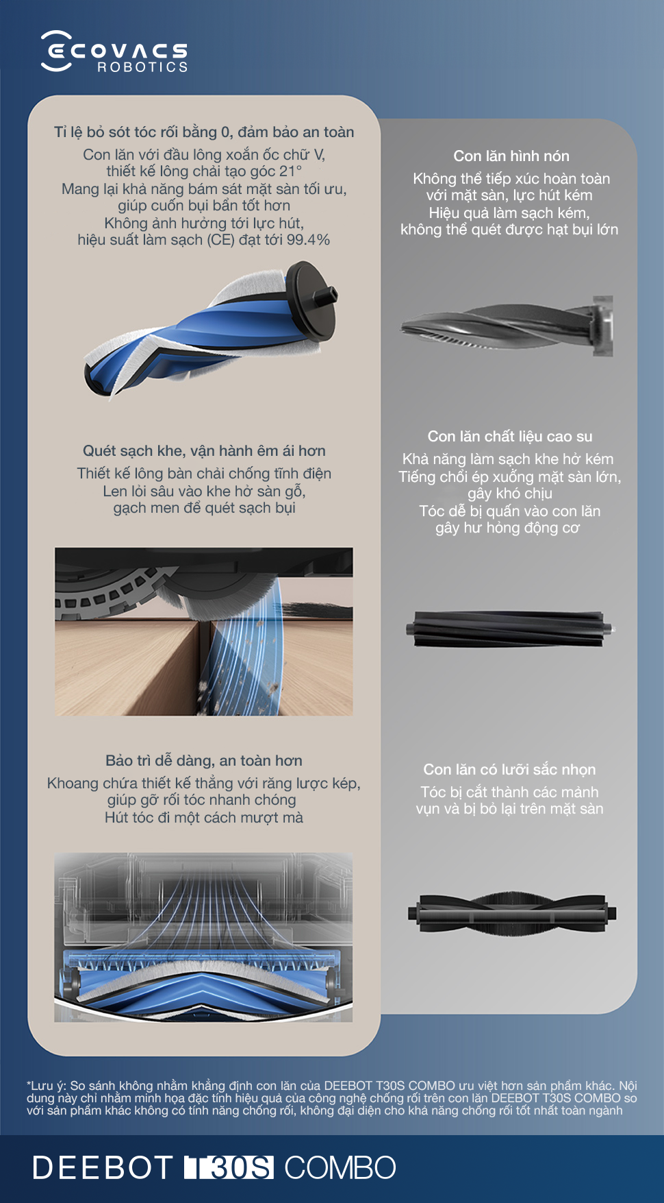 Cấu hình đầu chổi Ecovacs T30S Combo đa năng