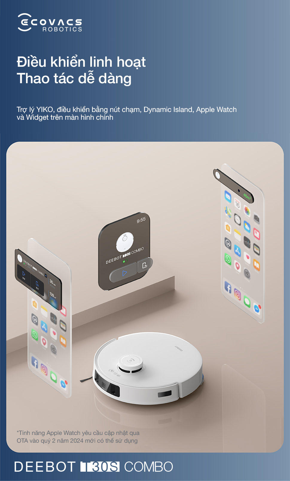 Bạn có thể tương tác với Deebot T30S Combo theo những cách trực quan nhất: