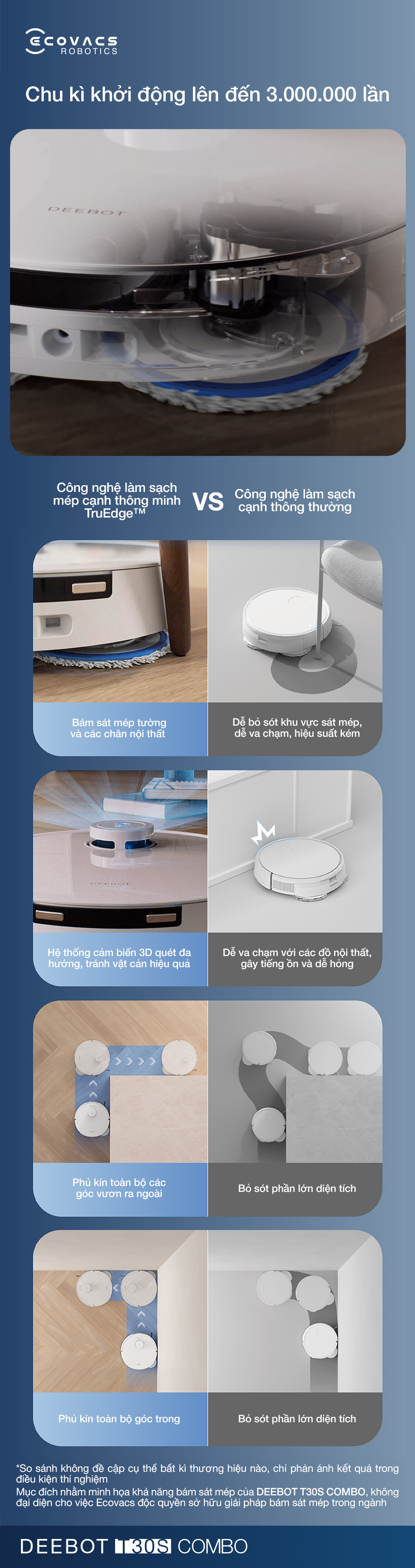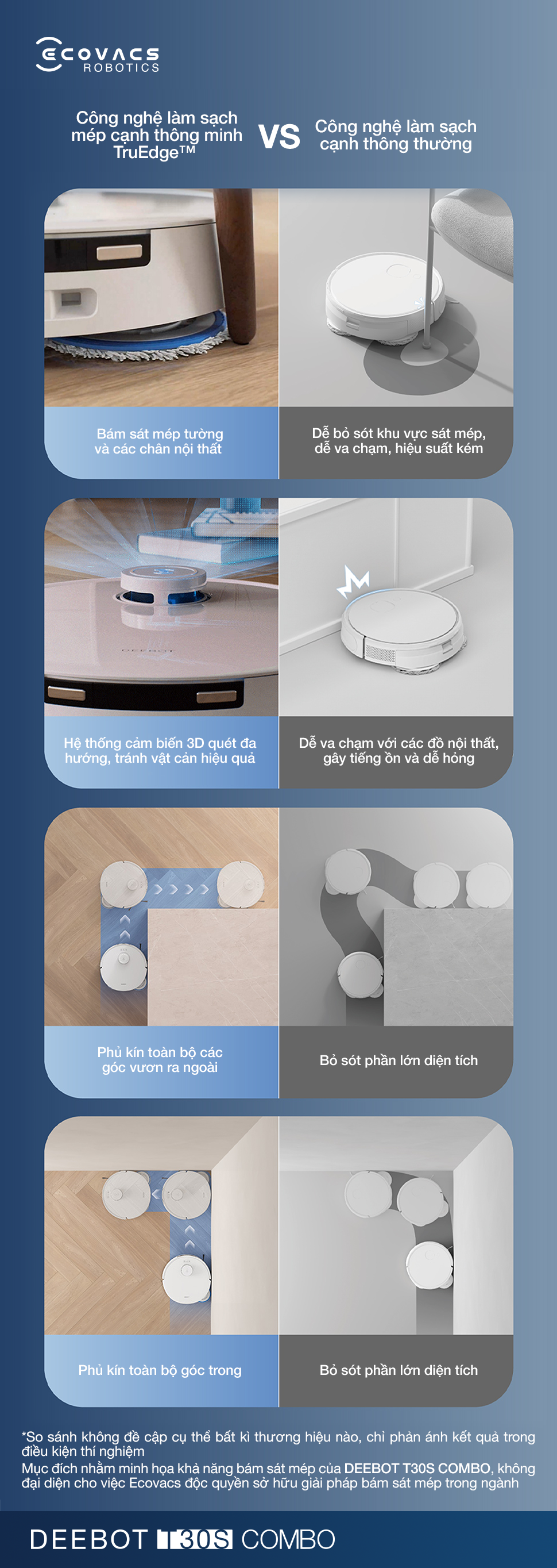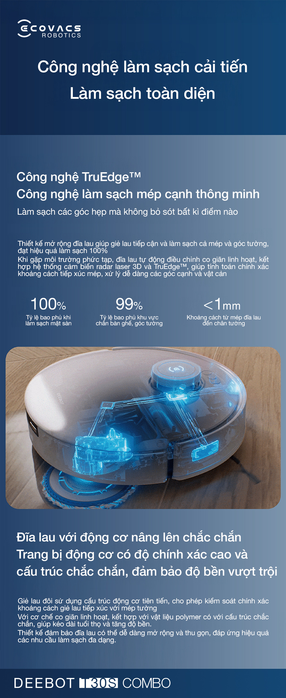 Công nghệ TruEdge™ trên Deebot T30S Combo làm sạch sát cạnh tường đến từng milimet