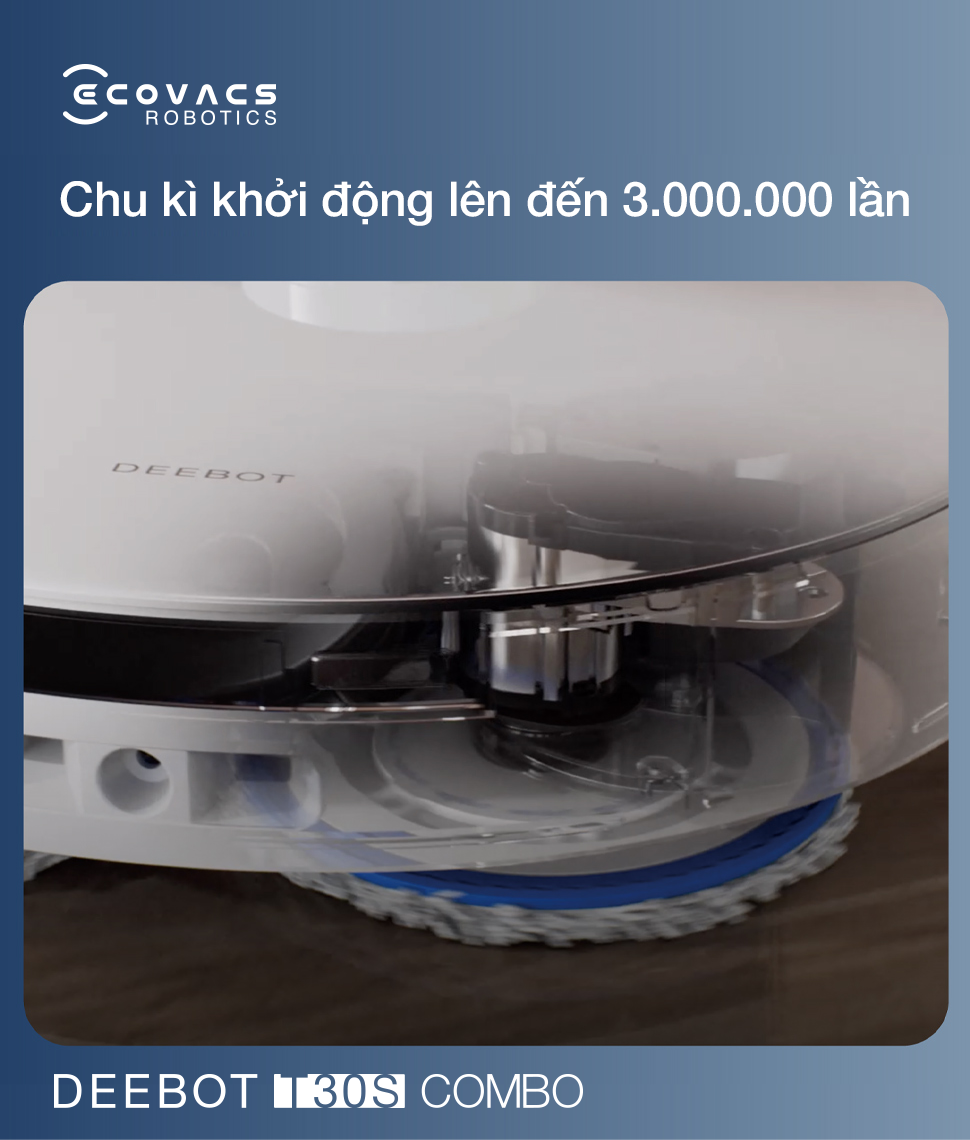 Khả năng di chuyển của Deebot được nâng tầm nhờ hệ thống bánh xe dẫn động có lực kéo lớn cùng thuật toán leo ngưỡng thông minh. Robot hút bụi T30S Combo dễ dàng vượt qua các vật cản cao đến 20mm, đảm bảo sự cơ động trên cả mặt sàn khô lẫn ướt, đáp ứng nhu cầu vượt ngưỡng cửa của gần 90% hộ gia đình hiện nay, tạo nên trải nghiệm dọn dẹp không gián đoạn.