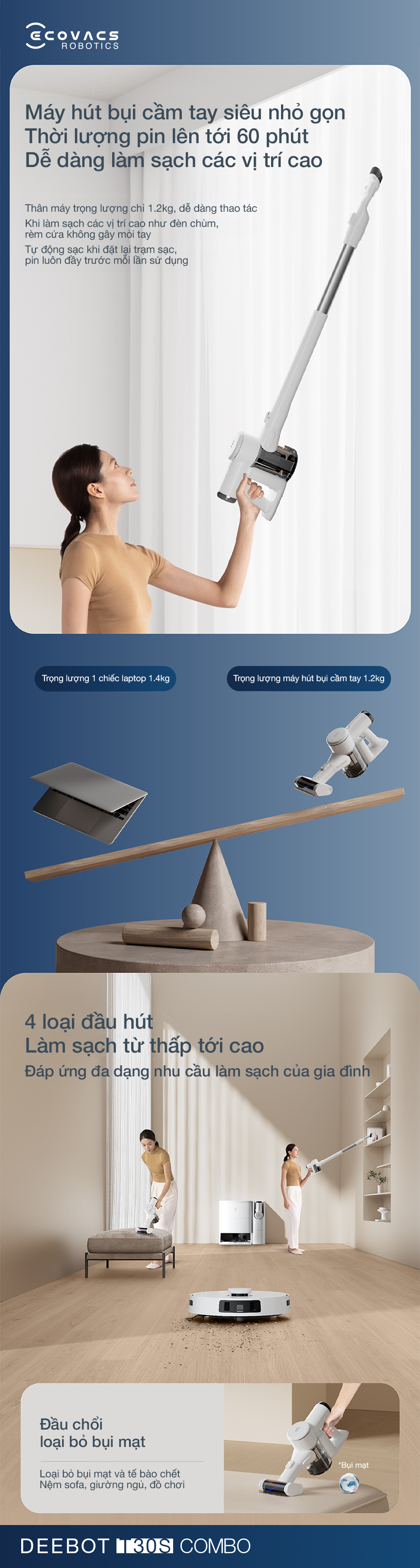 | Tên sản phẩm | Robot hút bụi lau nhà và máy hút bụi cầm tay Ecovacs Deebot T30S Combo | |