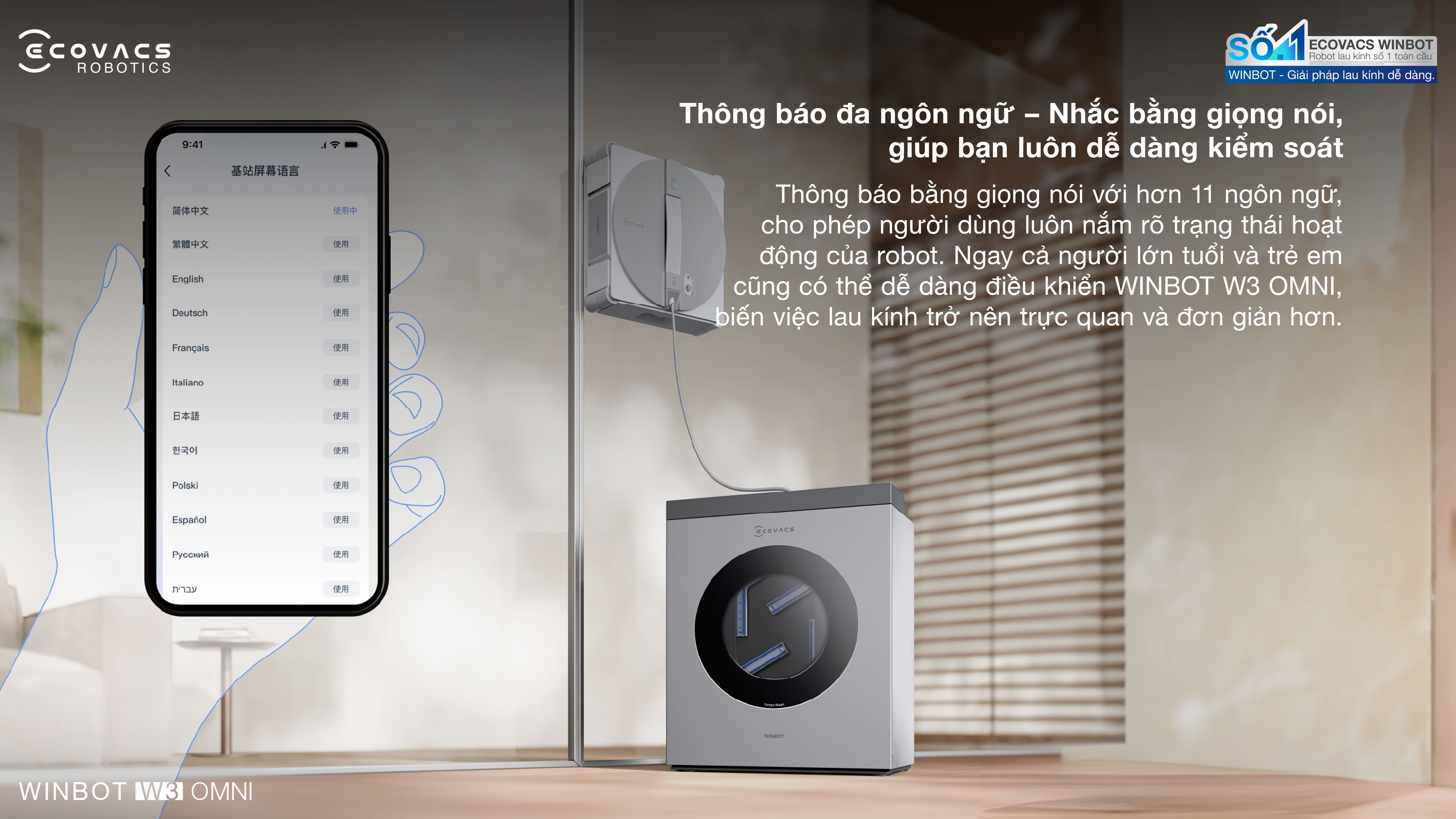 Robot lau kính Ecovacs Winbot W3 Omni