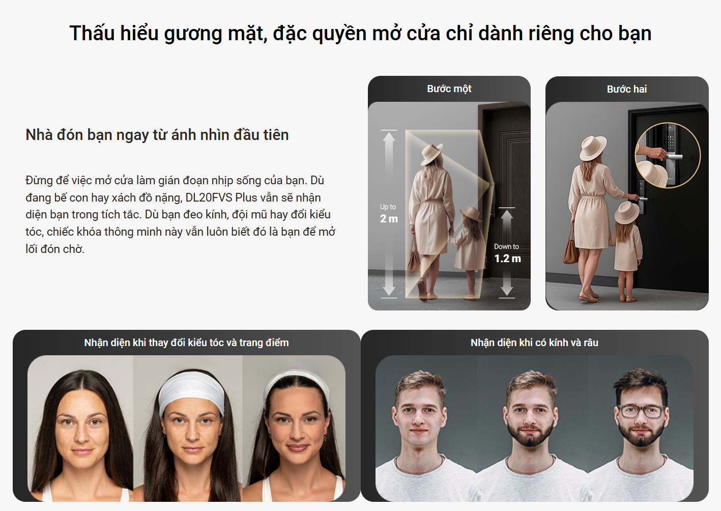• Nhận diện ngay cả khi đeo kính, đội mũ hoặc thay đổi kiểu tóc