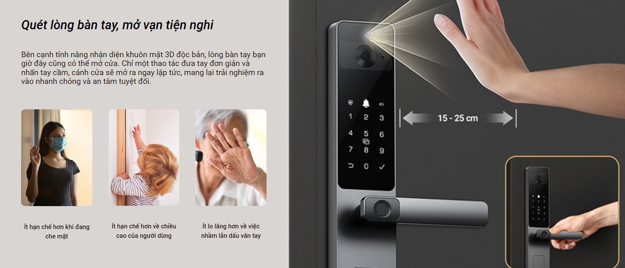 • Mở khóa nhanh, không chạm, cực kỳ tiện lợi