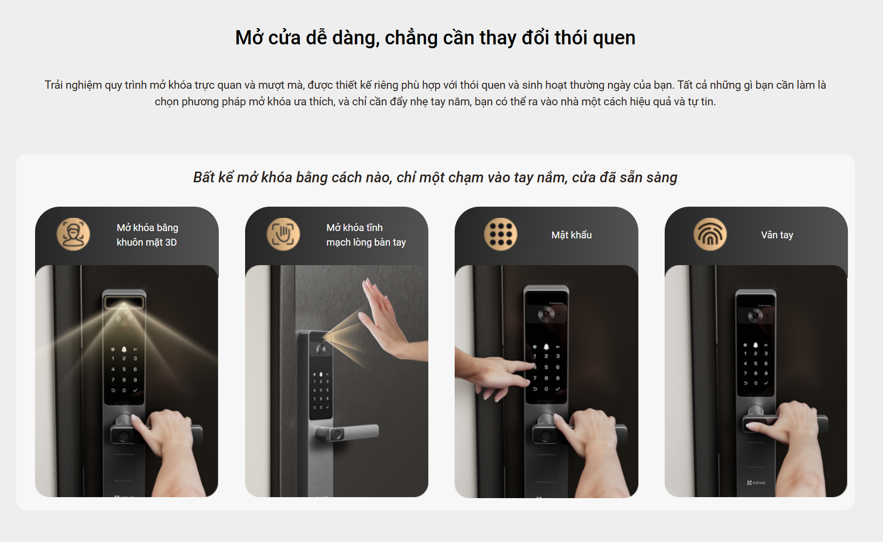 Ezviz DL20FVS Plus hỗ trợ nhiều cách mở khóa: