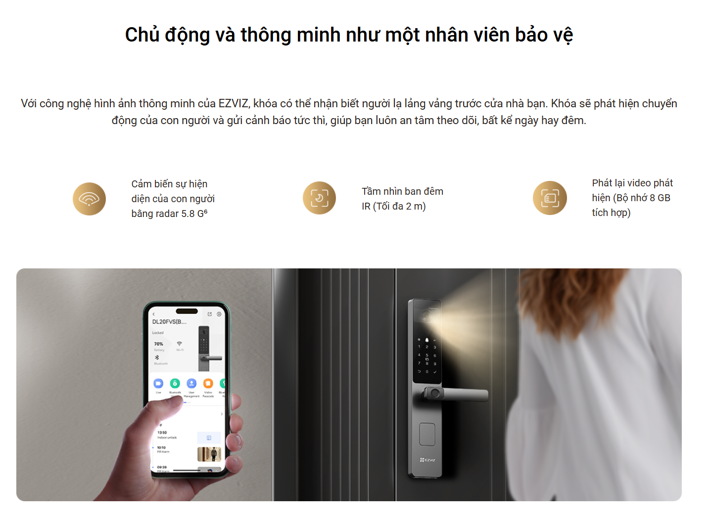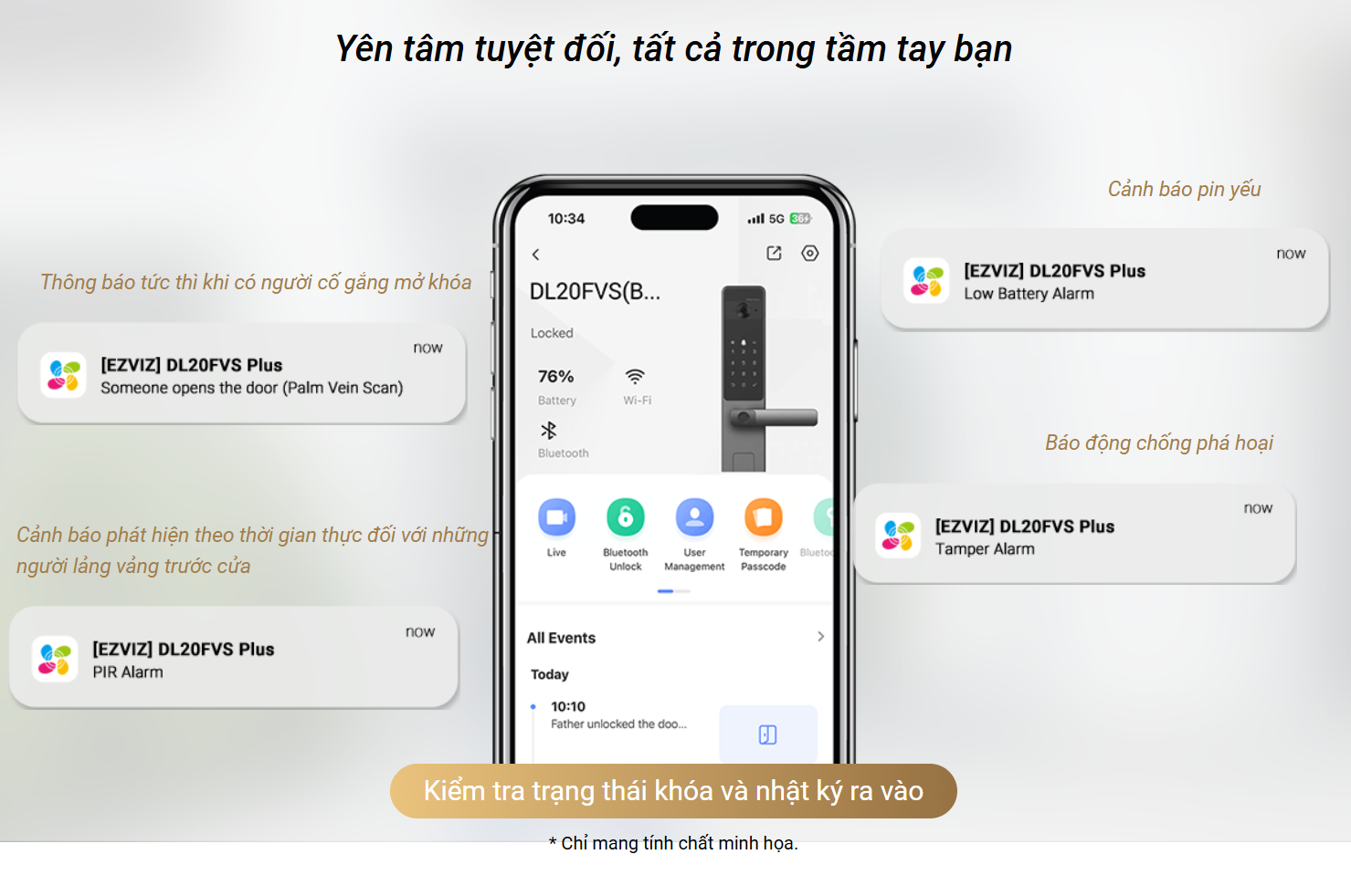 • Xem trực tiếp ngay trên khóa hoặc điện thoại
