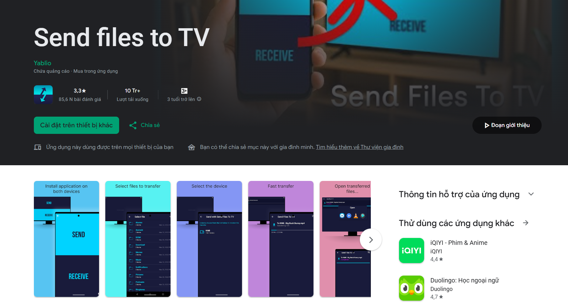 Có thể sử dụng ứng dụng Send files to TV trên cả máy chiếu và điện thoại sau đó gửi file apk từ điện thoại đến máy chiếu