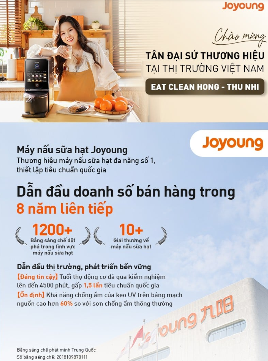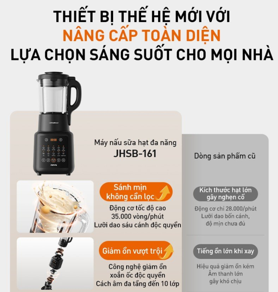 Máy Nấu Sữa Hạt Đa Năng Joyoung JHSB-161 – Sữa Hạt Sánh Mịn, Giảm Ồn Hiệu Quả, Tự Làm Sạch Thông Minh