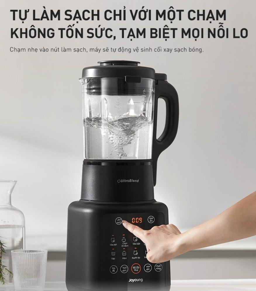 Sau khi sử dụng, bạn chỉ cần cho nước vào cối và nhấn nút “Làm sạch”. Joyoung JHSB-161 sẽ tự kích hoạt chu trình vệ sinh thông minh, đánh bay hoàn toàn cặn bám trên lưỡi dao và thành cối.