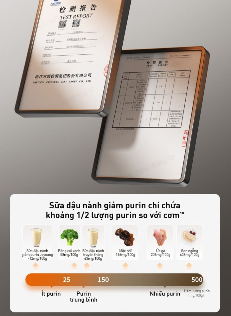 Joyoung JSCB-K7 PRO được tích hợp công nghệ giảm purin độc quyền, giúp loại bỏ lên đến 56% hợp chất purin trong sữa đậu nành – nguyên nhân gây ra các bệnh gout, tim mạch và ảnh hưởng đến chức năng thận.