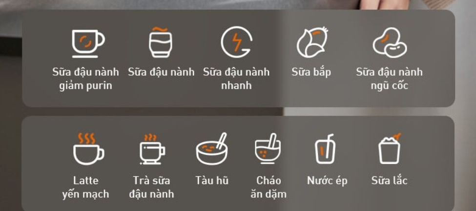 Sản phẩm được lập trình sẵn 11 chức năng nấu, bao gồm: sữa đậu nành, sữa bắp, tàu hủ, cháo, sinh tố, súp…