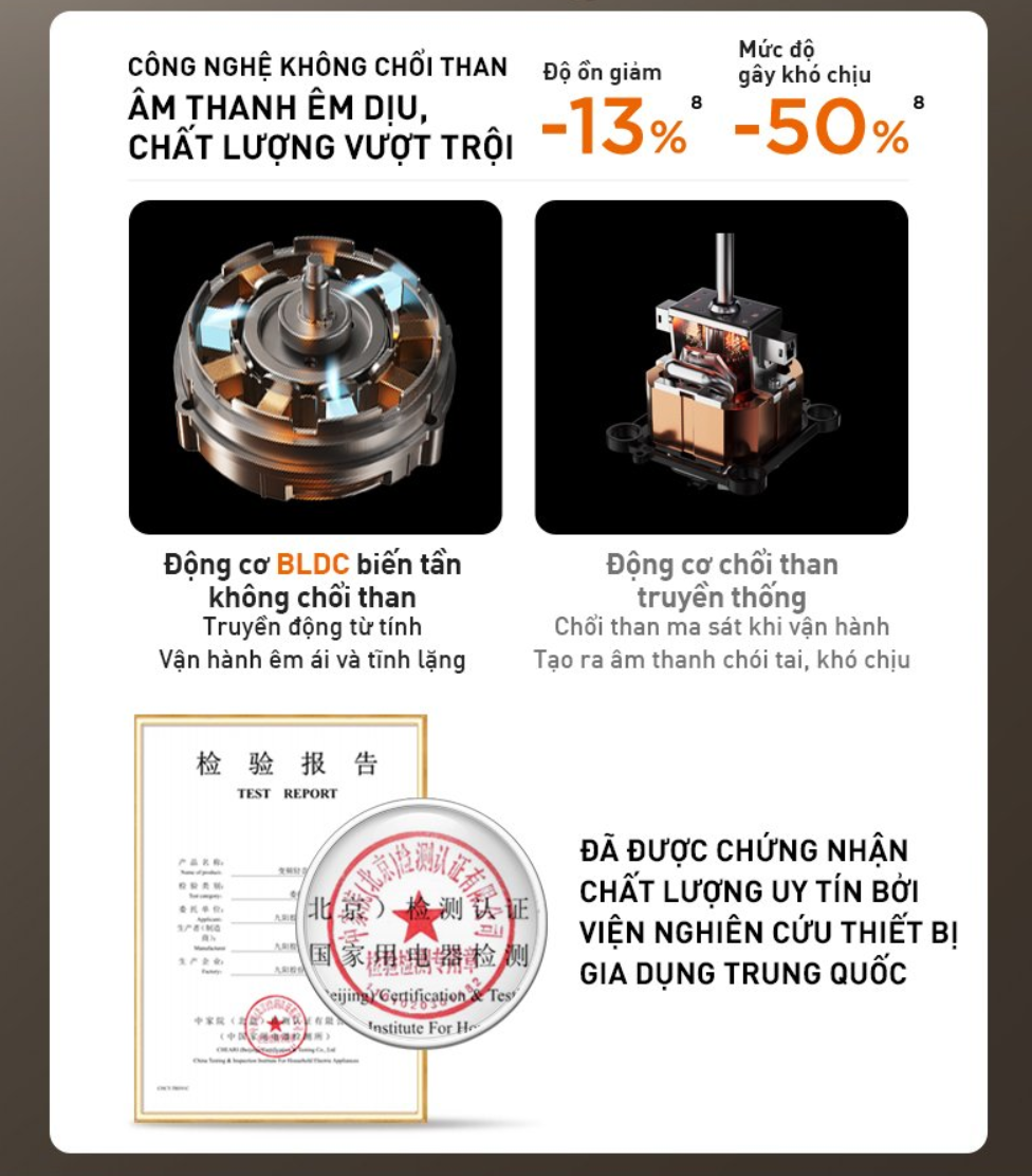 Động cơ êm ái – Giảm 82% tiếng ồn
