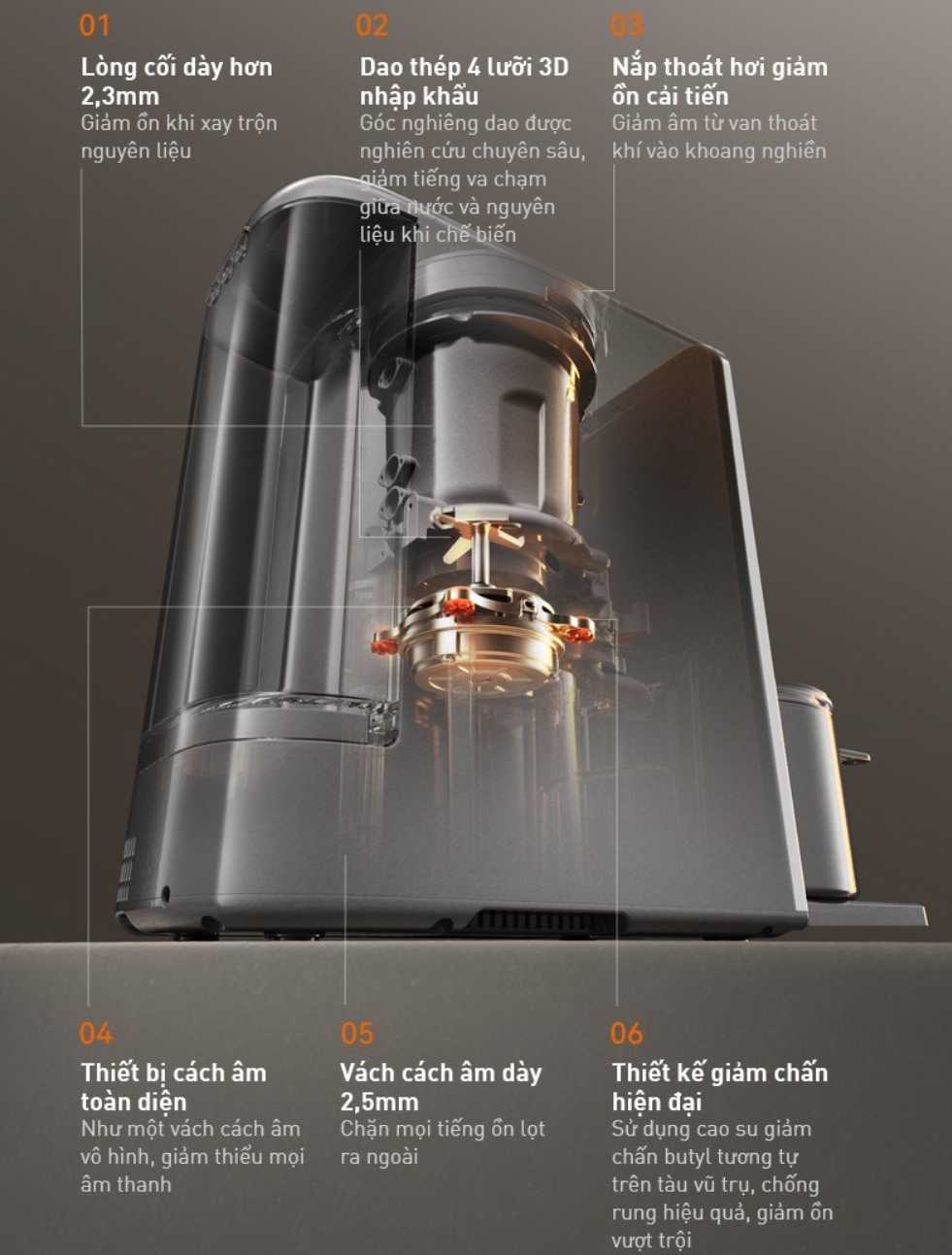 Nhờ sử dụng động cơ biến tần không chổi than hiện đại, Joyoung JSCB-K7 PRO hoạt động êm ái với độ ồn chỉ 35dB, giảm đến 82% tiếng ồn so với máy thông thường.