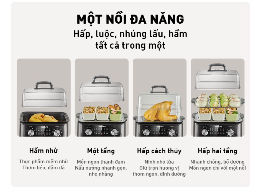Chức năng: Hấp, Luộc, Nhúng lẩu, Hầm