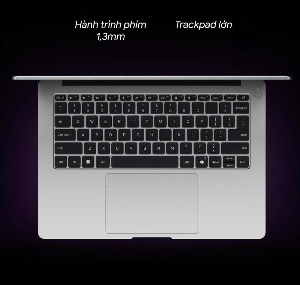 Bàn phím trên máy có kích thước đầy đủ, hành trình phím 1.3mm, tạo cảm giác gõ thoải mái và chính xác, phù hợp cho cả làm việc lâu dài.