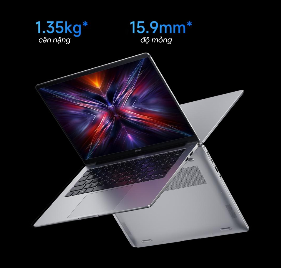 REDMI Book 14 2025 được hoàn thiện với thân máy bằng kim loại nguyên khối, mang lại cảm giác chắc chắn và sang trọng. Kích thước tổng thể cực kỳ nhỏ gọn: