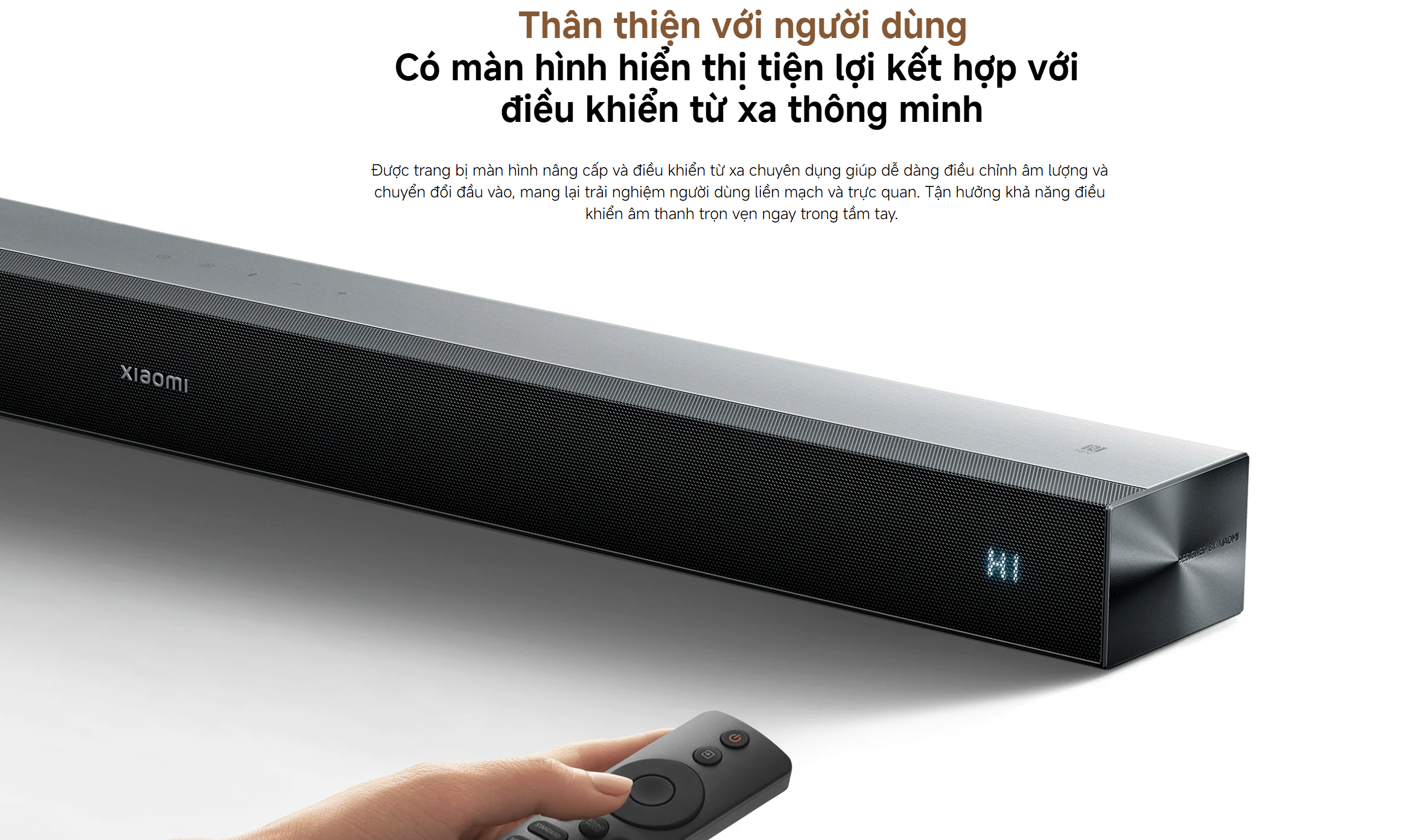 Xiaomi Soundbar Pro 2.0 được tích hợp màn hình hiển thị rõ ràng, hỗ trợ người dùng theo dõi chế độ hoạt động, âm lượng và trạng thái kết nối. Đi kèm theo đó là điều khiển từ xa chuyên dụng, cho phép bạn chỉnh âm lượng, chuyển chế độ hoặc thay đổi nguồn phát một cách thuận tiện. Với thiết kế đơn giản và trực quan, quá trình sử dụng trở nên dễ dàng ngay cả với người dùng mới.