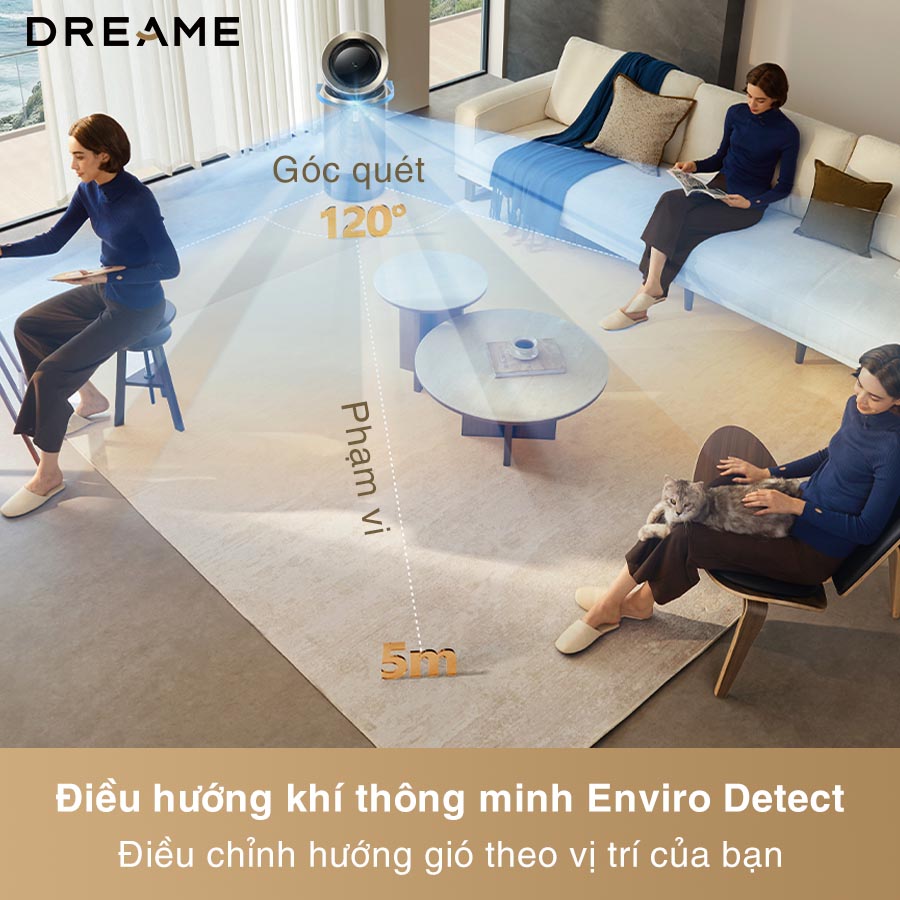 Tự động hướng luồng khí sạch đến vị trí người dùng trong bán kính 5m