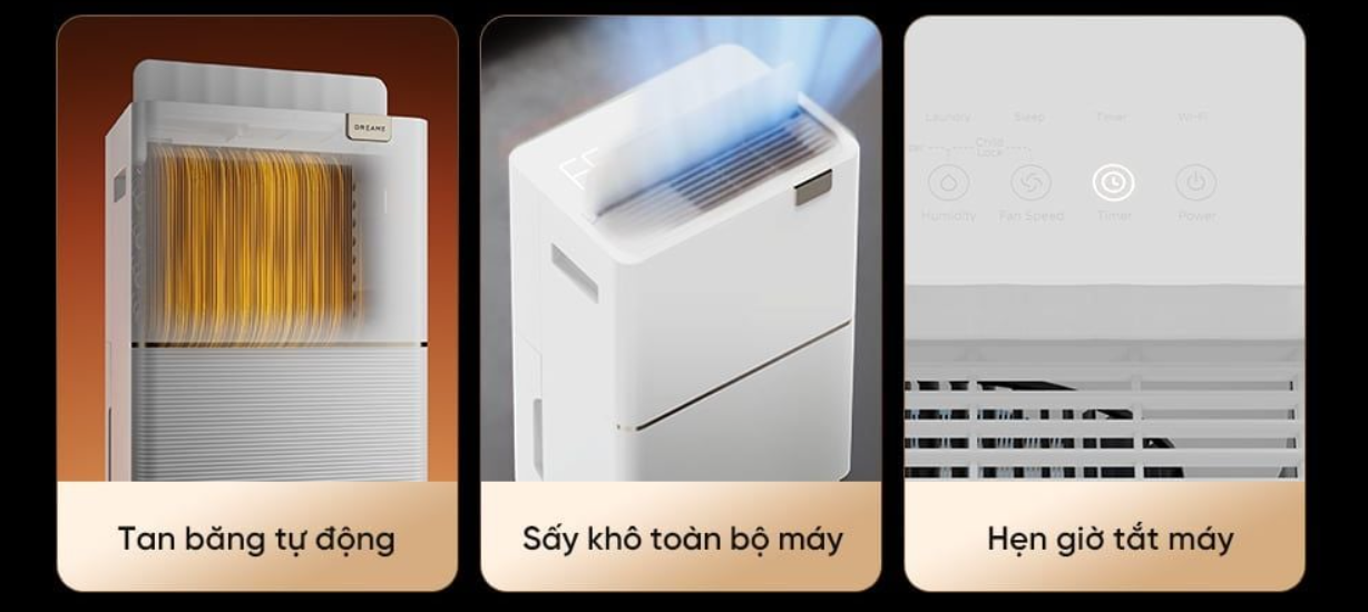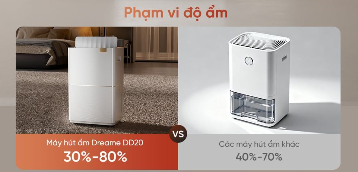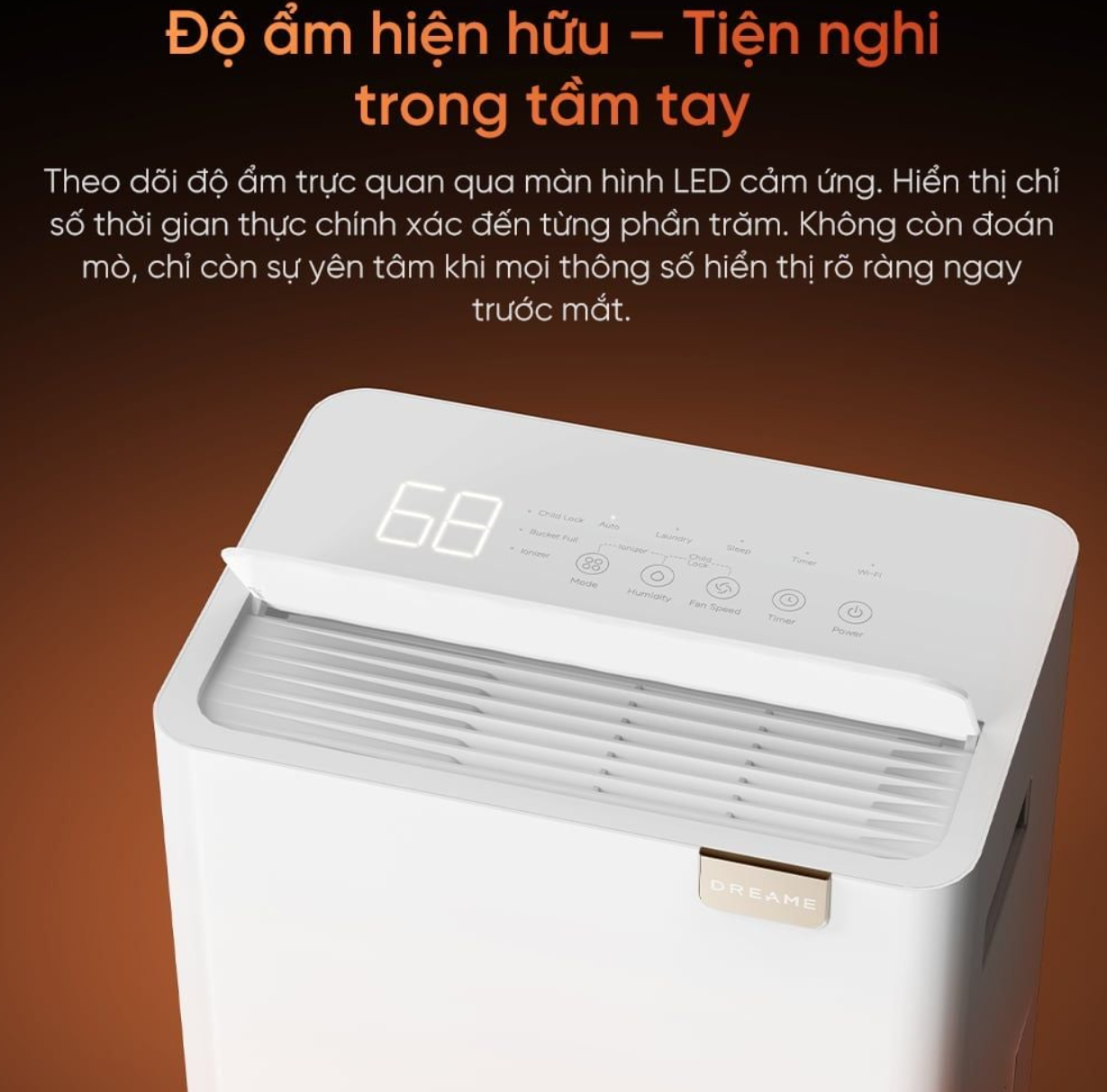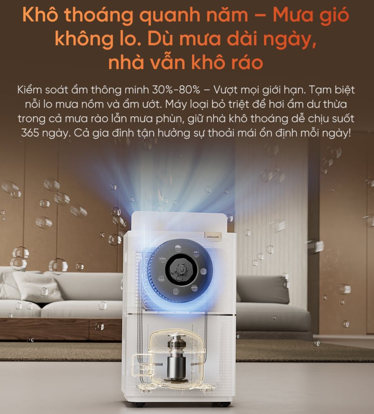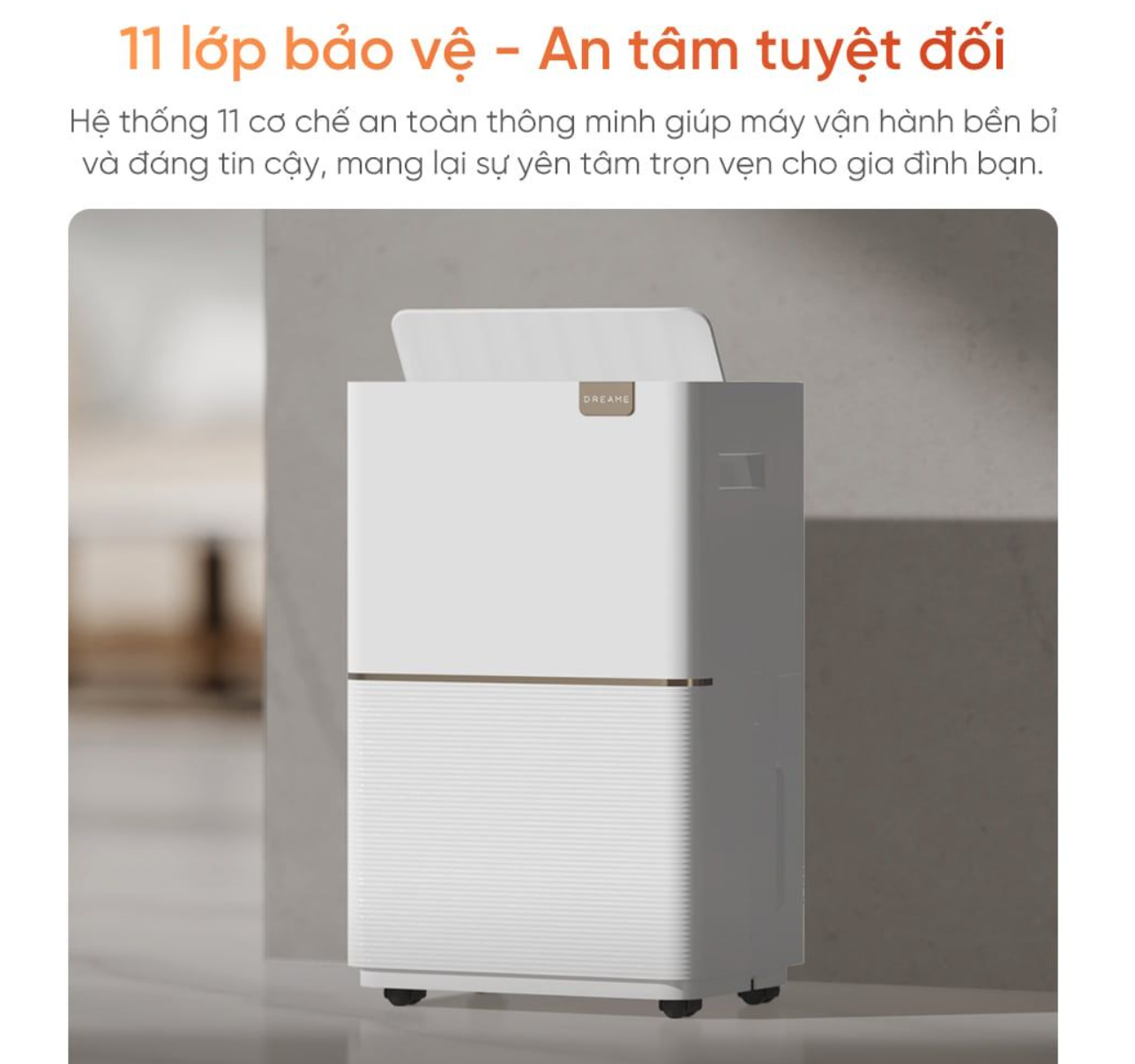 - Vận hành siêu êm 35,7dB(A): Yên tĩnh trong từng khoảnh khắc. Với công nghệ giảm ồn 5 lớp, máy hút ẩm Dreame hoạt động êm ái đến không ngờ. Khô thoáng nhanh chóng, êm ái tuyệt đối – bảo vệ giấc ngủ của bé và sự tập trung của bạn suốt cả ngày.