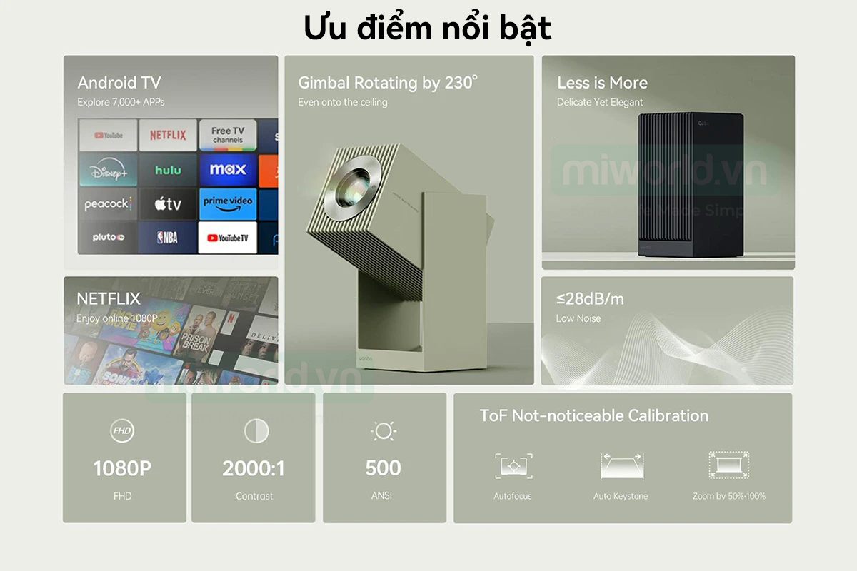 Máy chiếu Xiaomi Wanbo Cube 2 Pro là lựa chọn hoàn hảo cho những ai yêu thích rạp chiếu phim tại gia nhỏ gọn, hiện đại và thông minh. Với thiết kế tinh tế, khả năng trình chiếu Full HD sắc nét, hệ điều hành Android TV 11 cùng nhiều tính năng thông minh, sản phẩm mang đến trải nghiệm giải trí đỉnh cao cho gia đình bạn.
